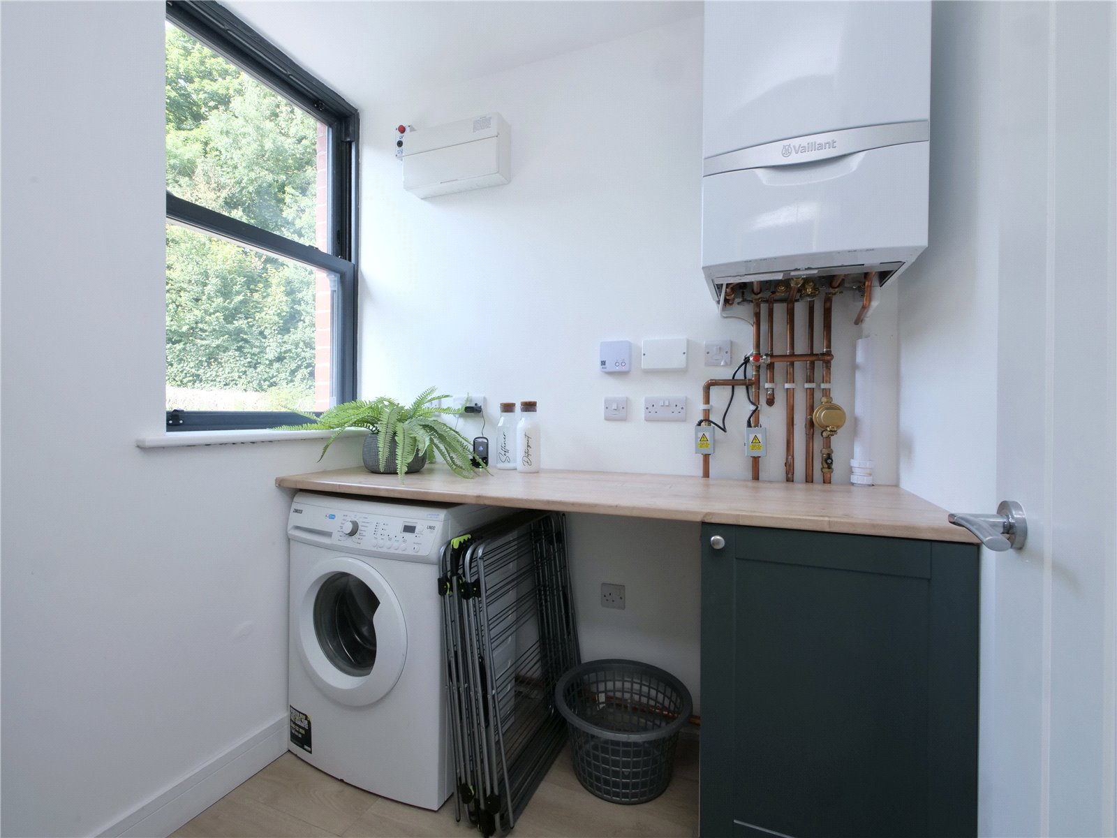 Off the entrance hall is also a cloakroom and useful utility room with space and plumbing for a washing machine.
