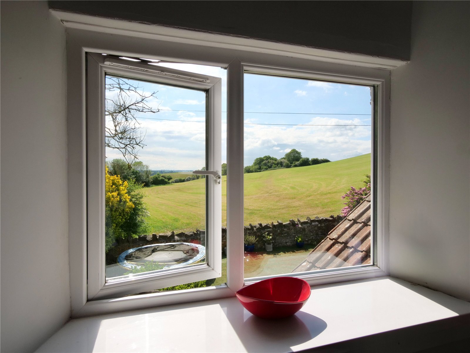 The fitted kitchen enjoys vaulted ceilings and an oil-fired range cooker, with direct access to the garden and a handy utility room. Upstairs are three well-proportioned double bedrooms and a family bathroom. The principal bedroom benefits from lovely countryside views and its own en-suite shower room.