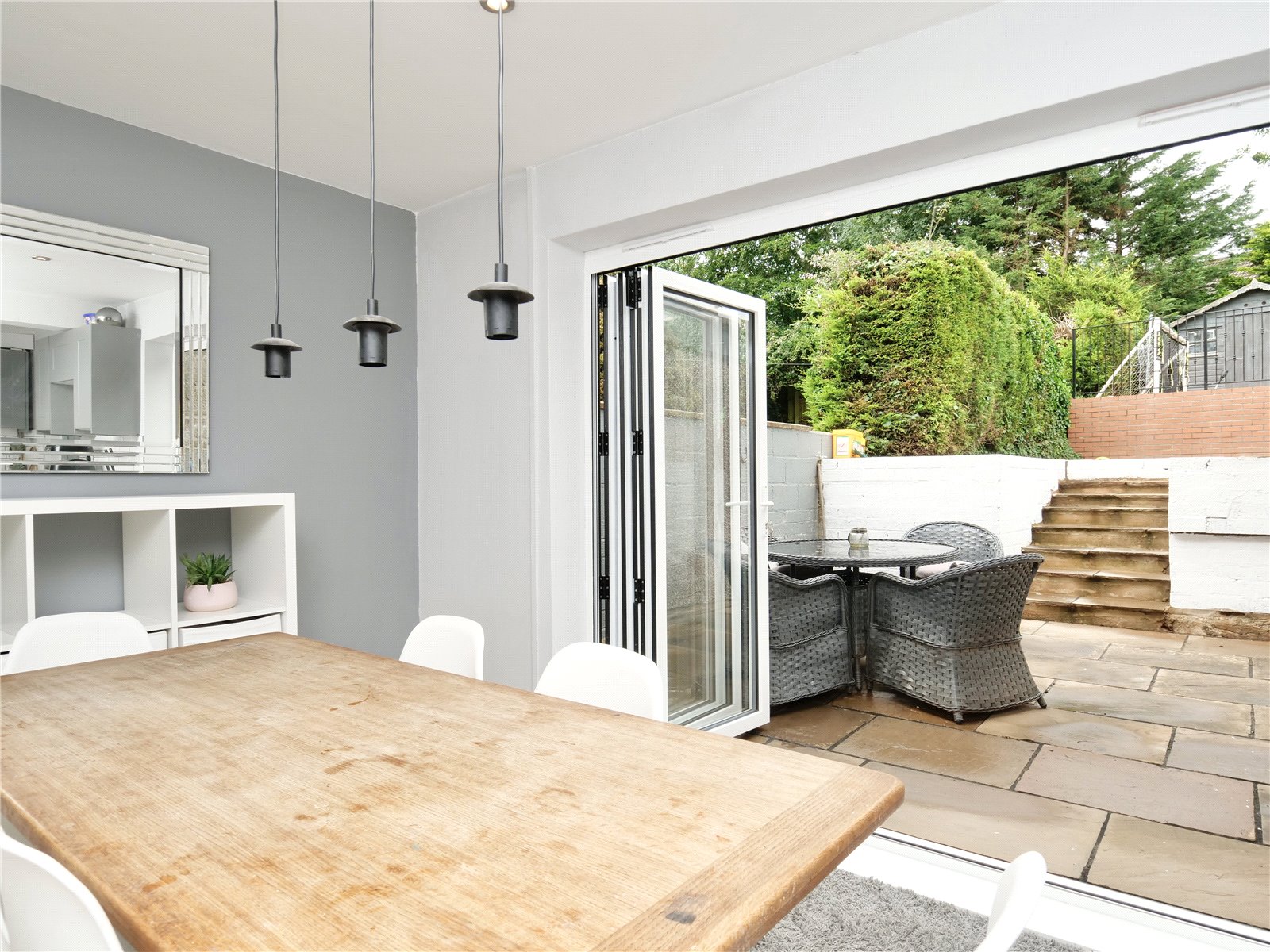 To the front of the property is a large driveway offering off road parking for multiple vehicles. The rear garden has been designed into tiered spaces to maximise the usable space. There are two lawn areas as well as a private terrace area perfect for alfresco dining.