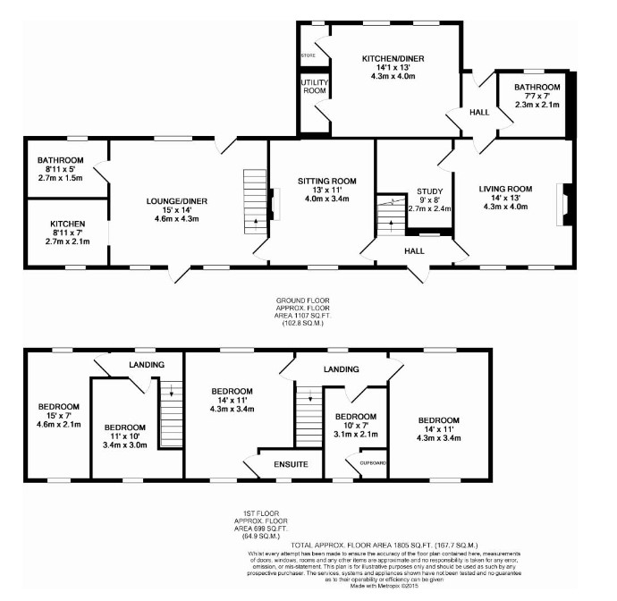 The main house comprises an entrance hall from which you access the kitchen/diner. This is a lovely family space with fitted units and original parquet flooring and attractive feature stone wall. Off the kitchen/diner is a utility room and very useful walk in pantry/store room. The main reception room overlooks the rear of the property boasts a stone fireplace with log burner and doorway through to a snug/study. The inner hallway has an external door leading out to the rear garden, stairs rising to the first floor accommodtion and a doorway leading through to the sitting reception room with fireplace. Also downstairs is a family bathroom. The first floor of the main residence comprises a master bedroom with feature fireplace and ensuite shower room, and two further bedrooms with lovely views over the rear garden.