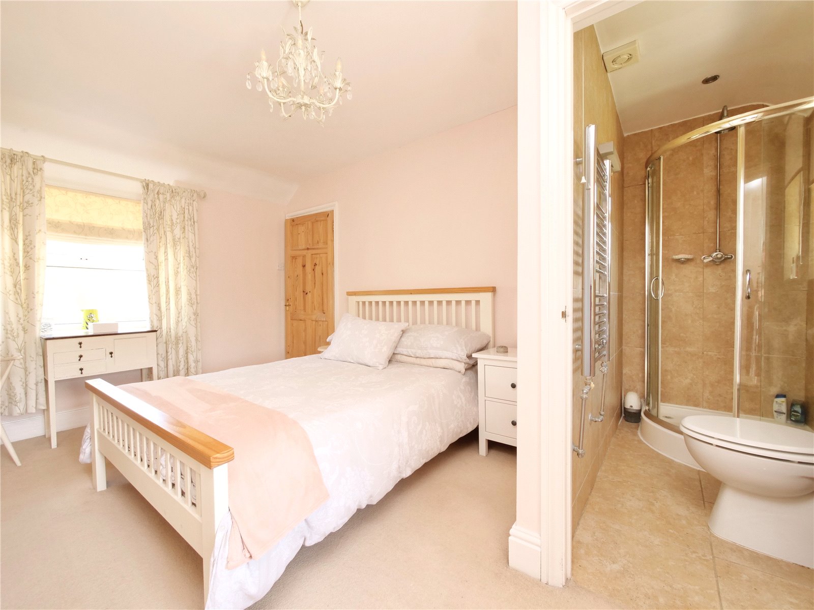 The impressive rear garden is arranged as a stretched lawn with plenty of space for entertaining the family, all enclosed by hedgerow as well as raised flower bed borders and shrubbery. There is also a large patio area. The garden surrounded by open fields providing serene views and privacy in this idyllic setting.