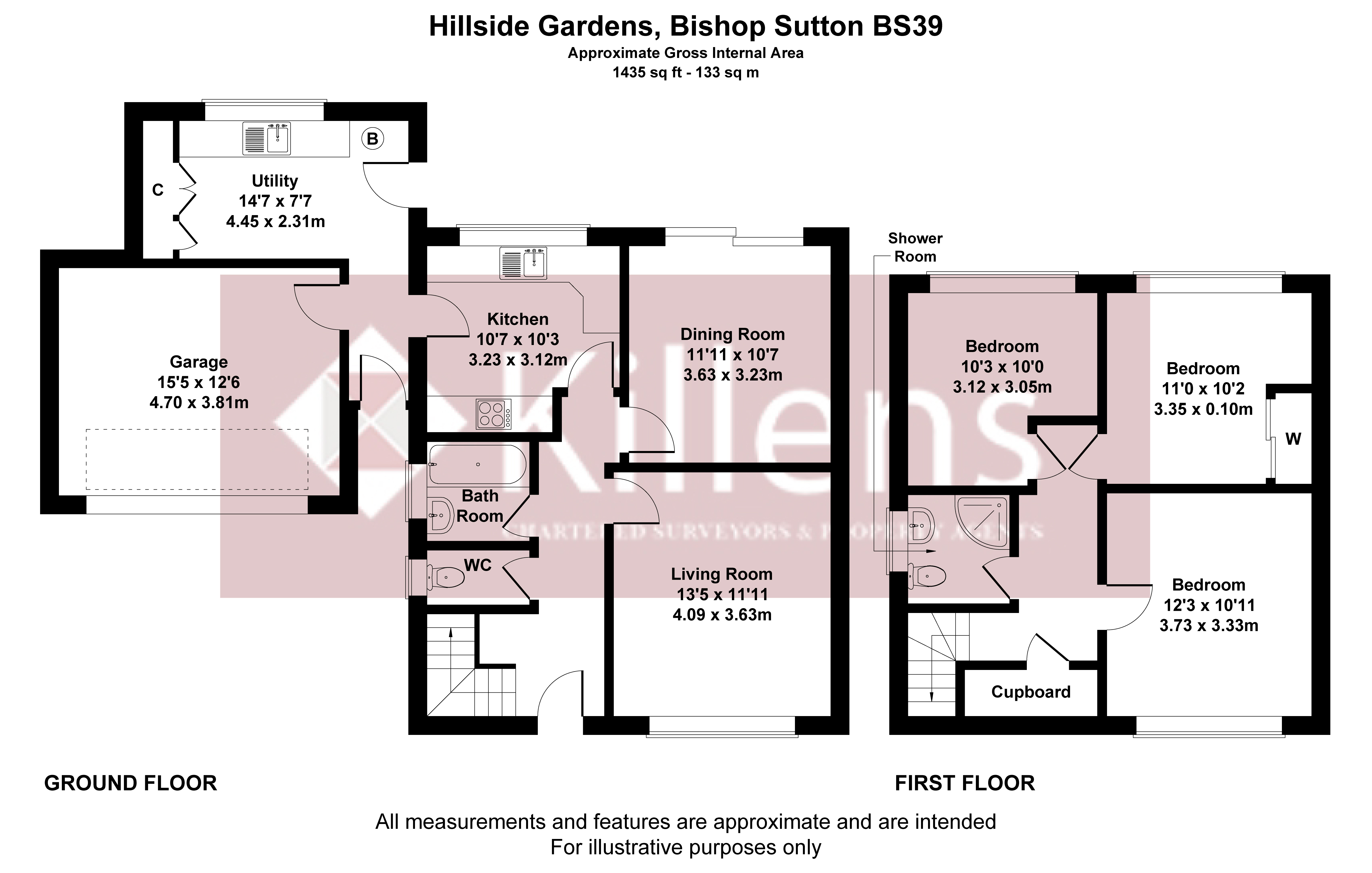 With picturesque views towards Chew Valley Lake at the front and open countryside to the rear, 9 Hillside Gardens is a well-presented family home offering light-filled, spacious accommodation. Large picture windows throughout create a bright and airy feel, while the thoughtful layout provides both comfort and practicality. The sitting room features an open fireplace, and a separate dining room opens directly onto the rear garden. The generous kitchen with integrated Dishwasher and Fridge, which leads to a large utility room, adding to the home's functionality. The ground floor also benefits from a bathroom with a separate WC, while the first floor includes three double bedrooms and a shower room. The property's generous outdoor space includes a landscaped front garden with mature shrubs and trees, a driveway with ample parking, and an enclosed rear garden backing onto rolling farmland.