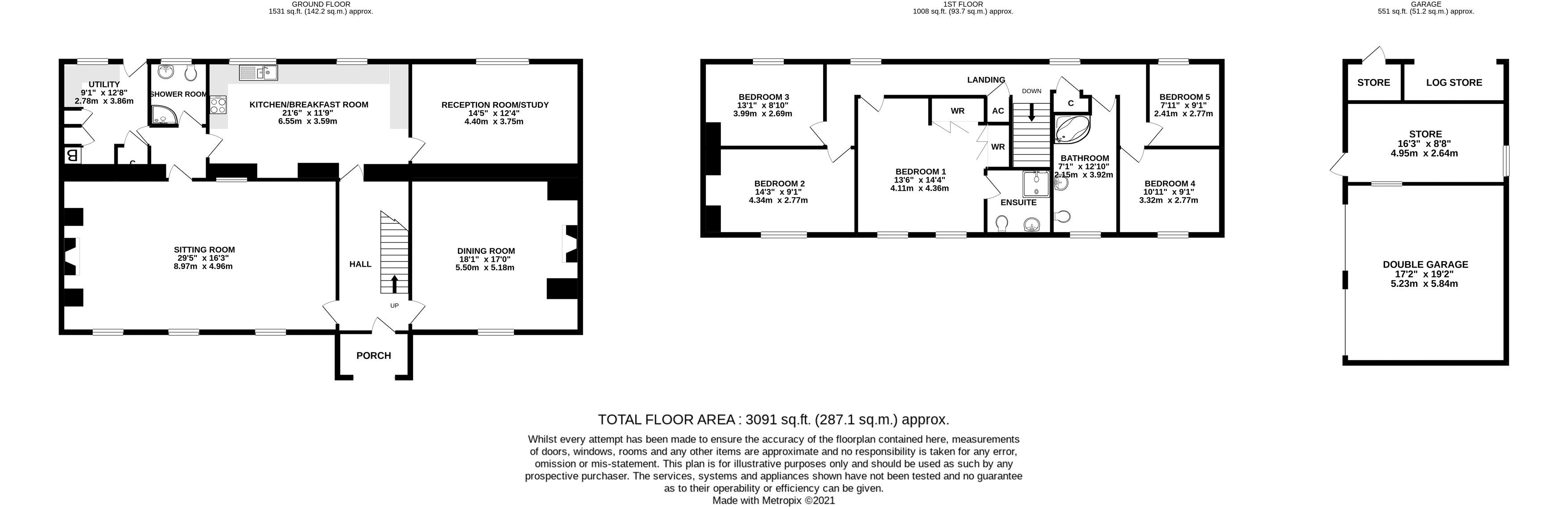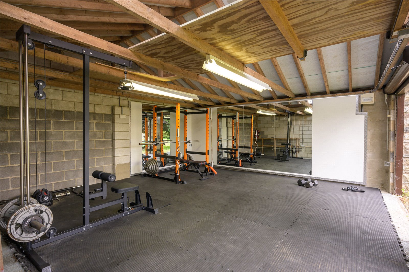The property is accessed via a private gravel driveway, offering plenty of parking space. There is also a double garage which is currently used as a gym, a workshop/store, a separate storage room, and a log store, making this an ideal home for those in need of extra storage or workspace.