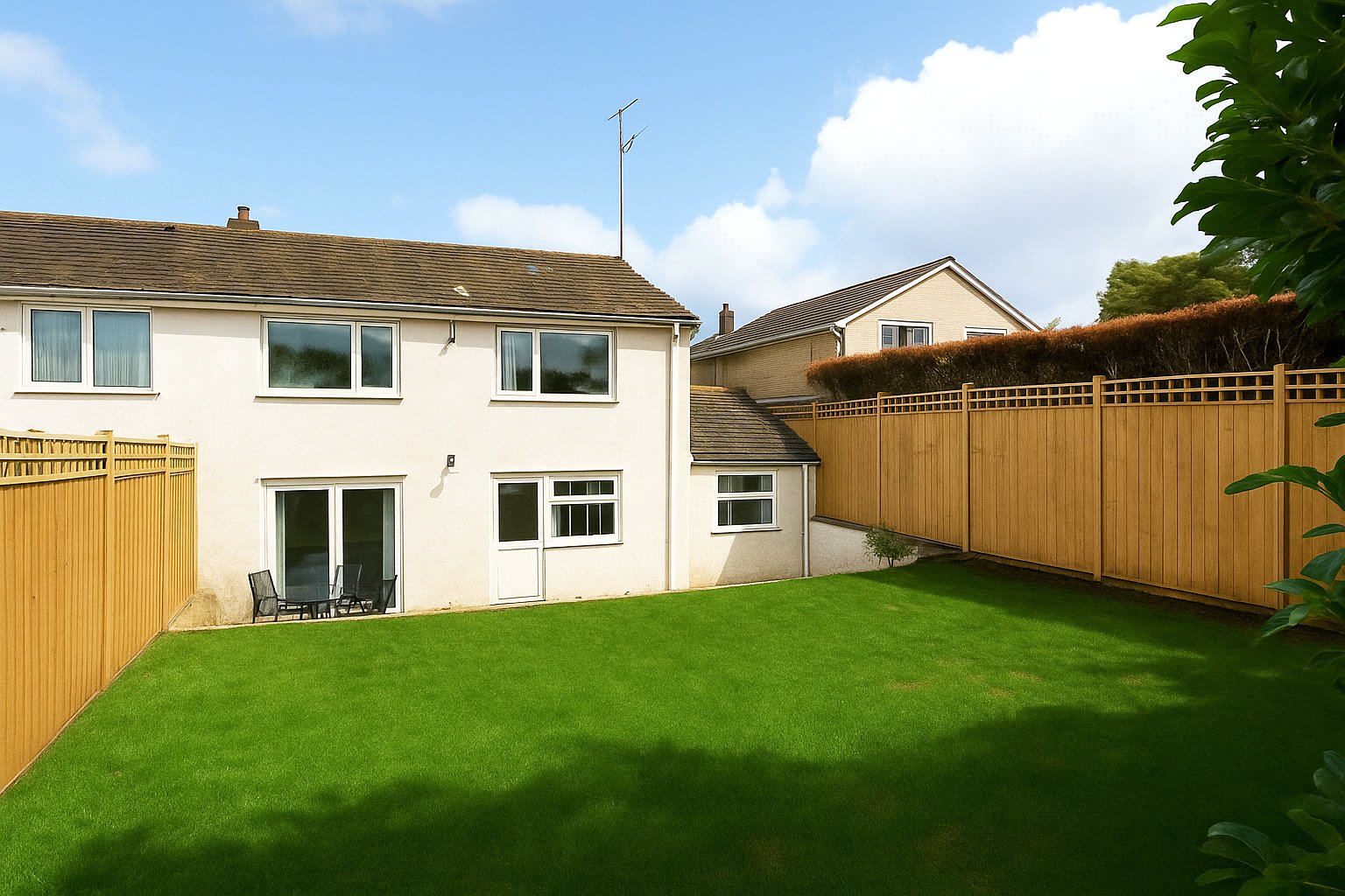 A beautifully renovated three-bedroom semi-detached home with generous gardens, ample parking, and far-reaching views.