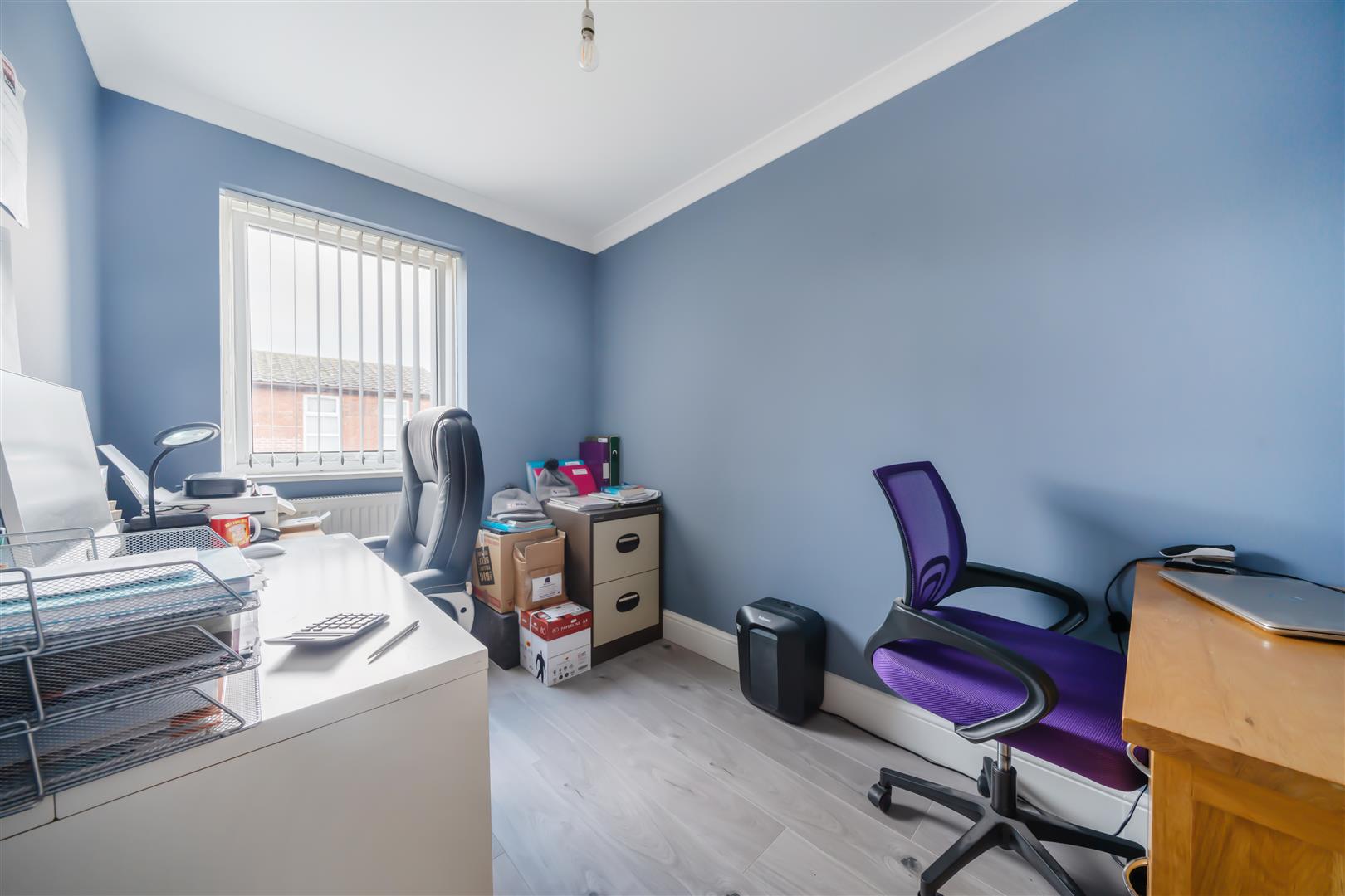 The third bedroom is perfect for a home office, gaming room or nursery, a versatile space suitable for many needs.