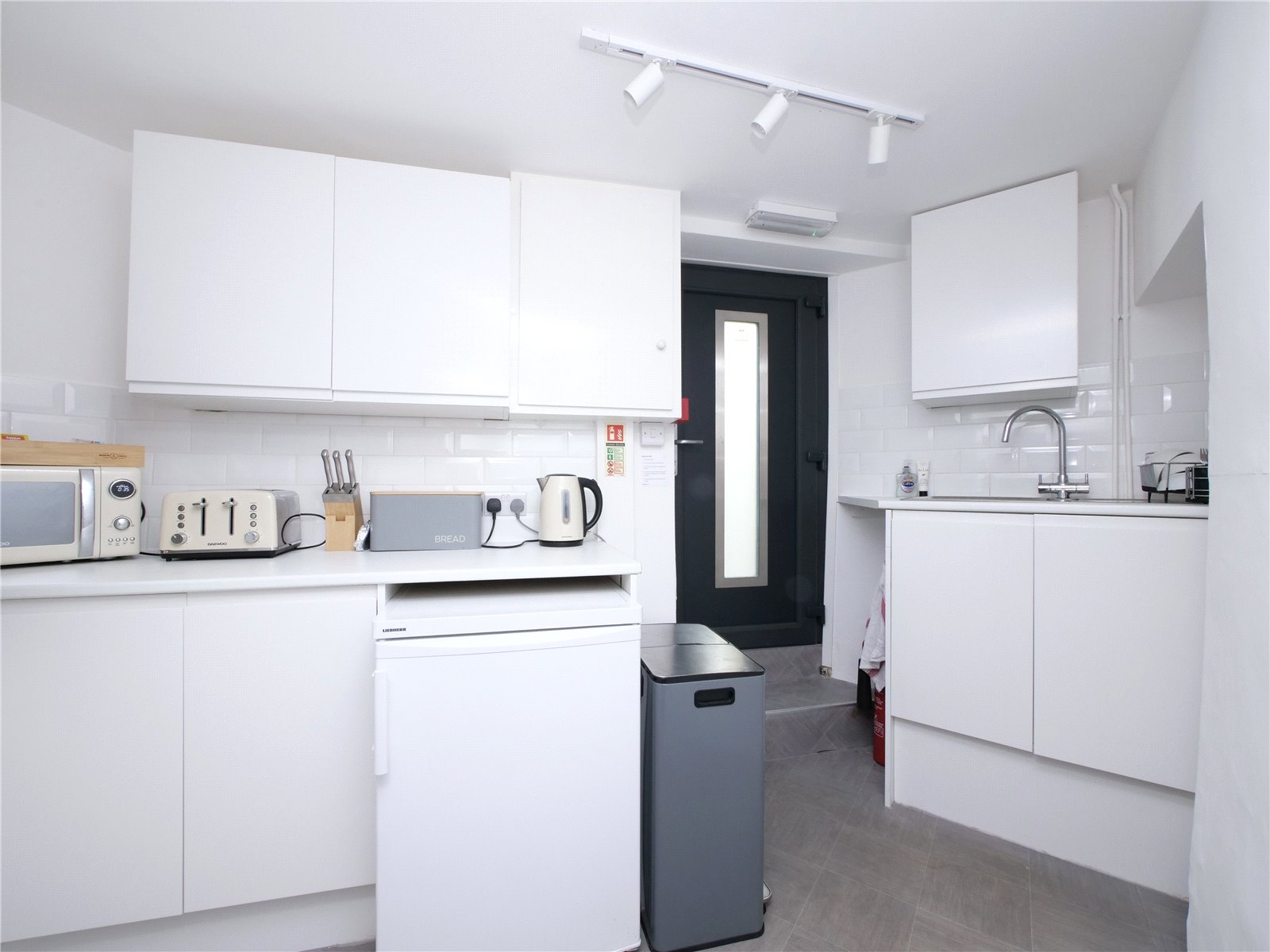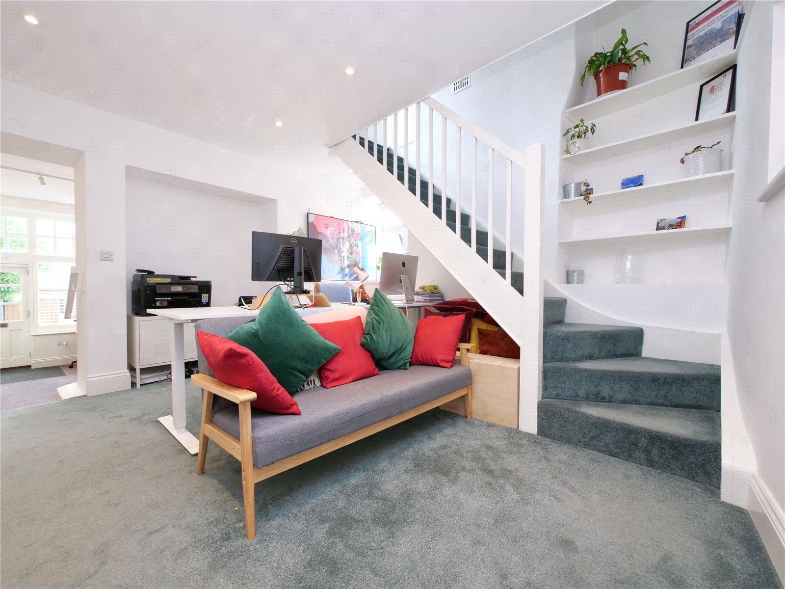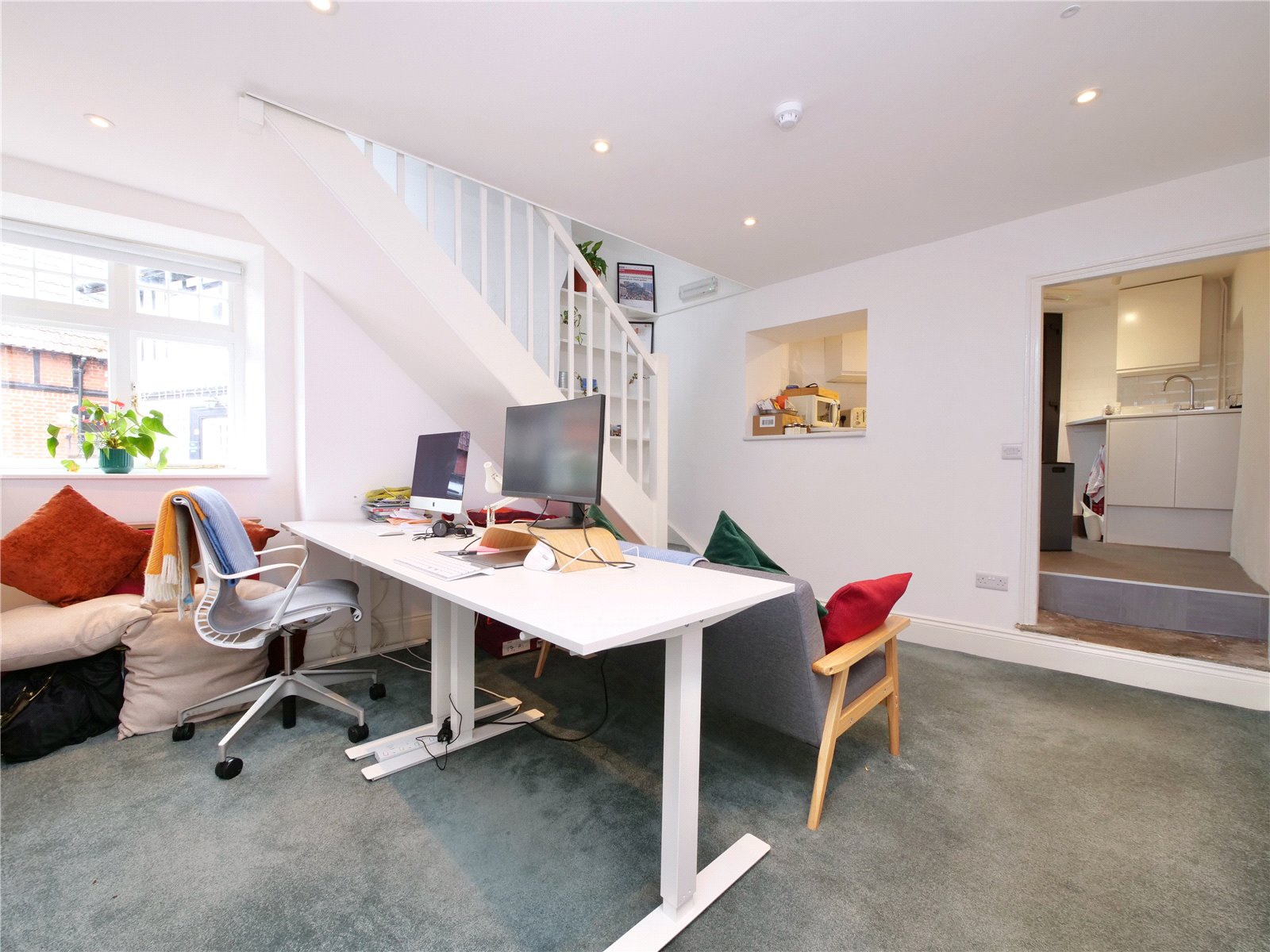 This characterful building offers a flexible layout with two bright and spacious ground floor offices, a well-appointed kitchen with convenient rear access, and a first-floor meeting room, cloakroom, and storage space.