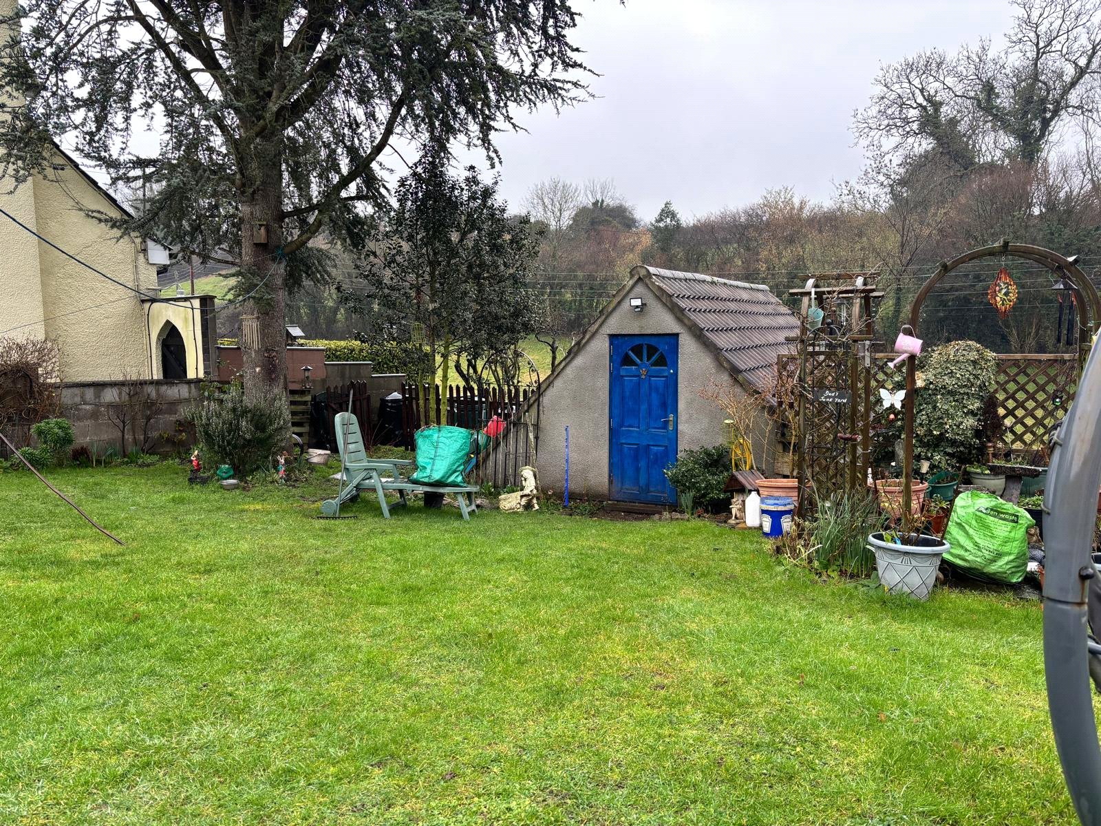 The property is approached via a driveway providing off-road parking and access to a detached single garage. The gardens are a particular feature and are arranged over a series of sloping and terraced lawned areas, interspersed with mature shrubs and planting. Timber steps lead to an elevated seating area, from which there are attractive views across the surrounding countryside.