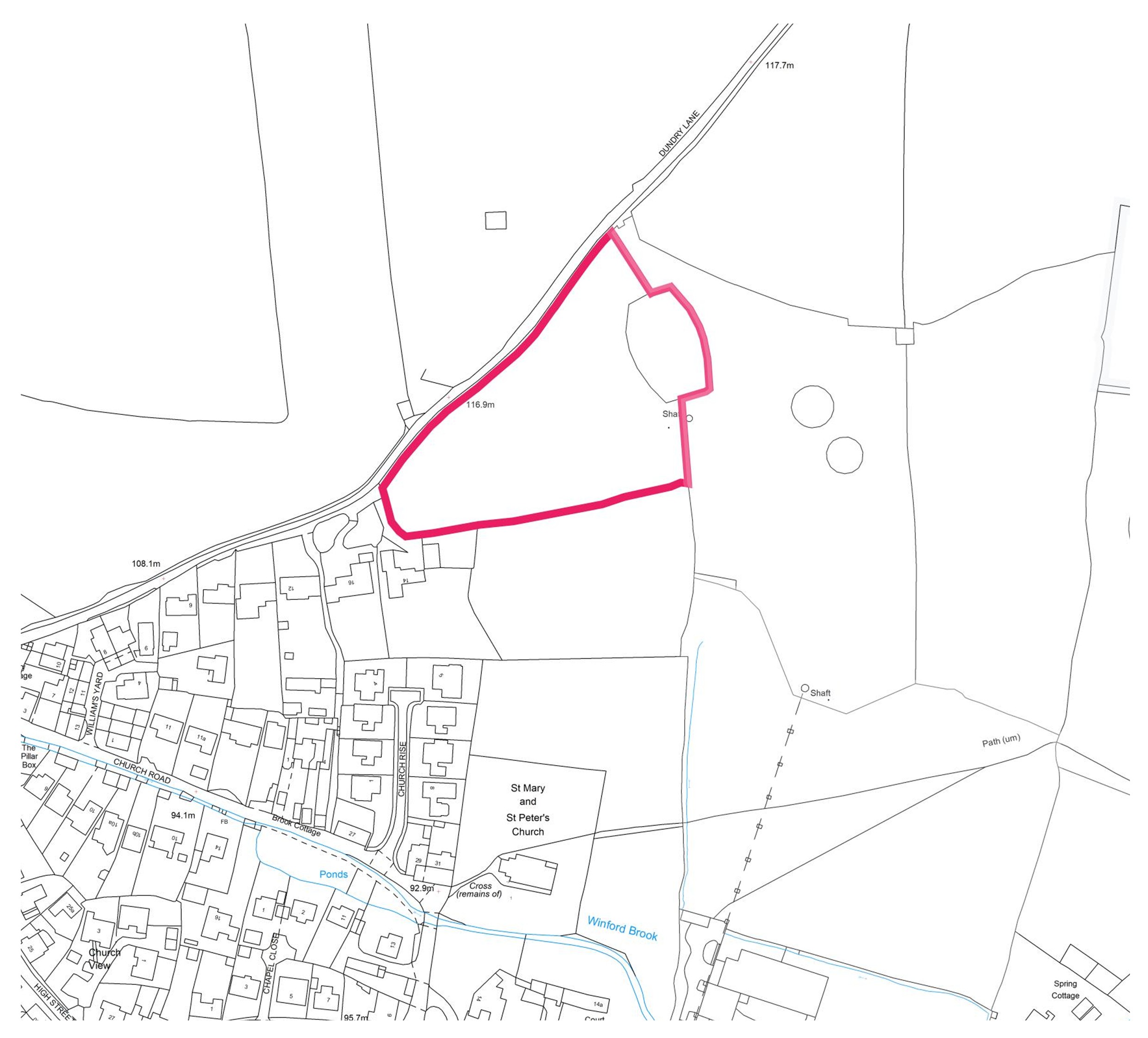 4. Paddock adjoining Dundry Lane of 2.75 acres (1.11 hectares). Guide £50,000 - £80,000