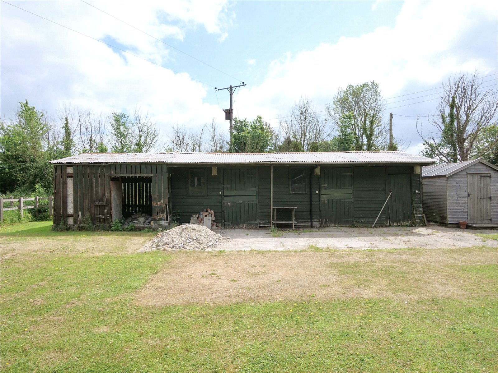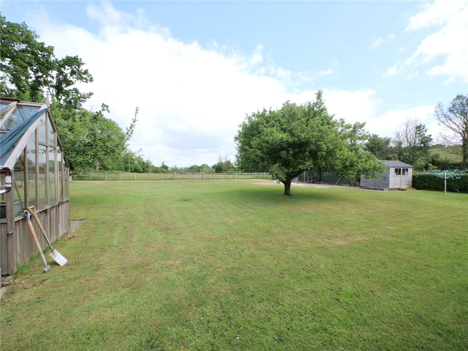 Beyond the formal gardens, a five bar gate opens into the level paddock, accompanied by timber stables ready for refurbishment, and situated just along the lane is an additional field of approximately 2 acres.