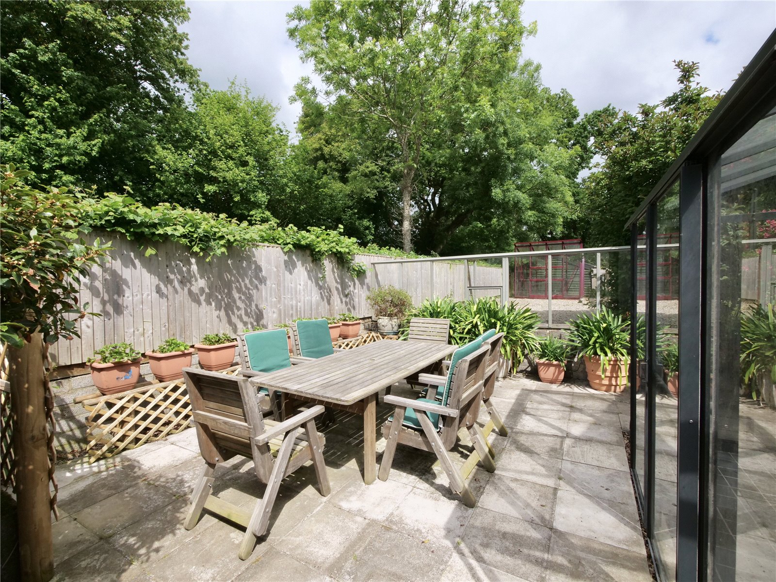 The grounds are as impressive as the interior. Lawns sweep around three sides of the house, punctuated by fruit trees, flower beds, greenhouses, sheds and a secluded patio, while a broad paved terrace beside the living room is perfect for al fresco entertaining.