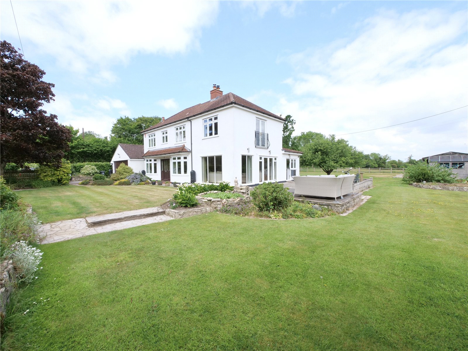 Trifford is a beautifully presented five bedroom detached home that pairs rural tranquillity with easy access to Bristol and Bath. Approached by a private drive, the 1930s house sits in sweeping gardens, next to a level paddock with timber stables and a double garagean ideal setting for equestrian pursuits or simply enjoying open countryside. A separate field along the lane also forms part of the offering.