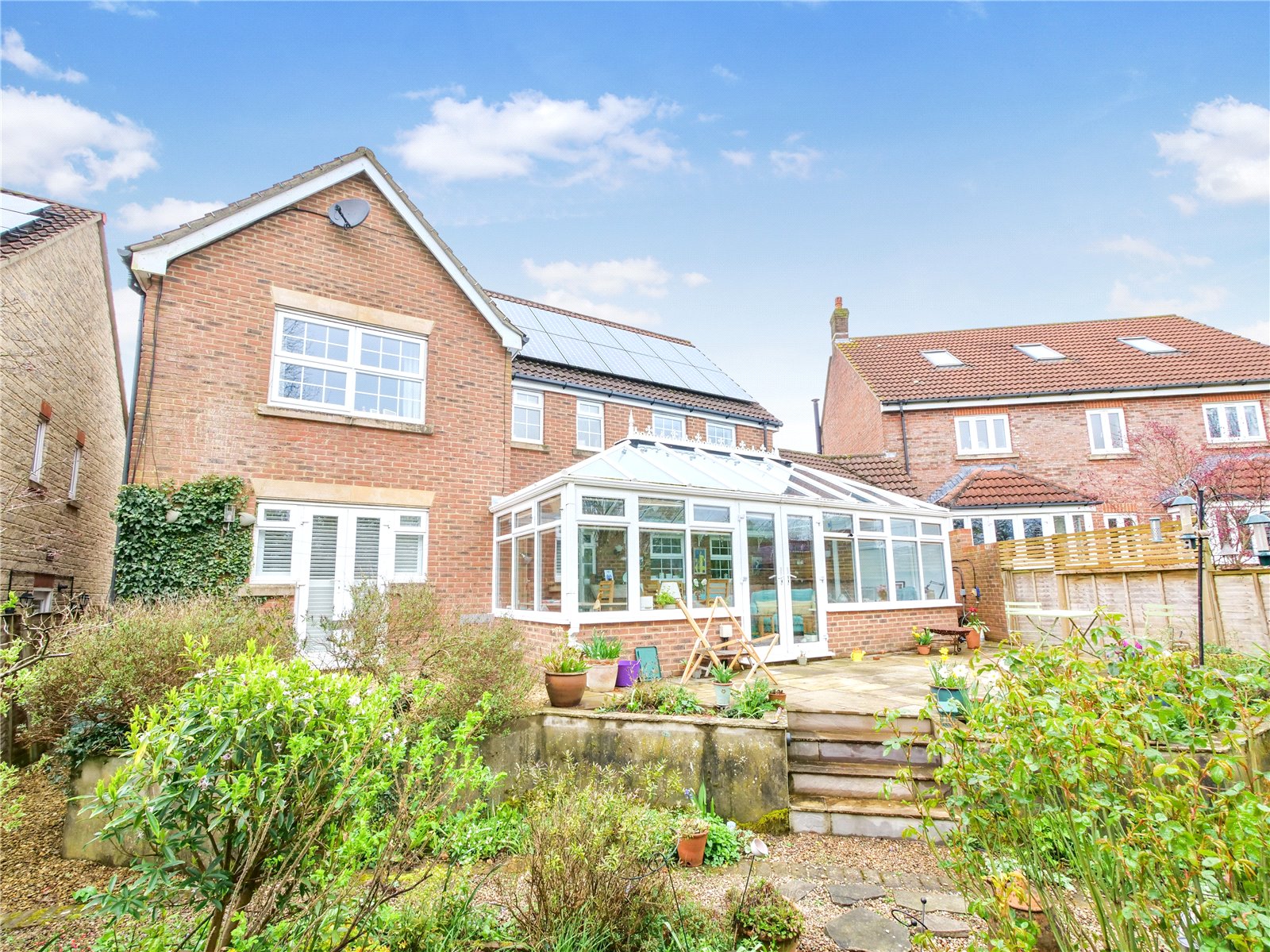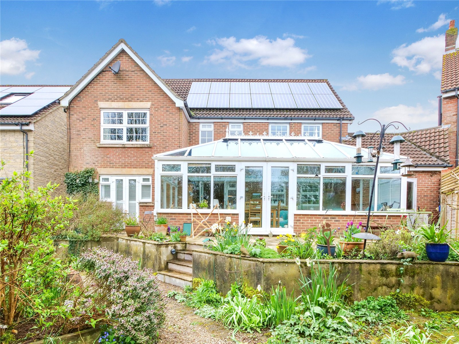 This attractive double fronted property offers off-street parking and a large single garage. The rear garden has been thoughtfully landscaped with terraced areas, gravelled pathways and a charming water feature, all designed to make the most of the peaceful setting and views across the adjoining fields