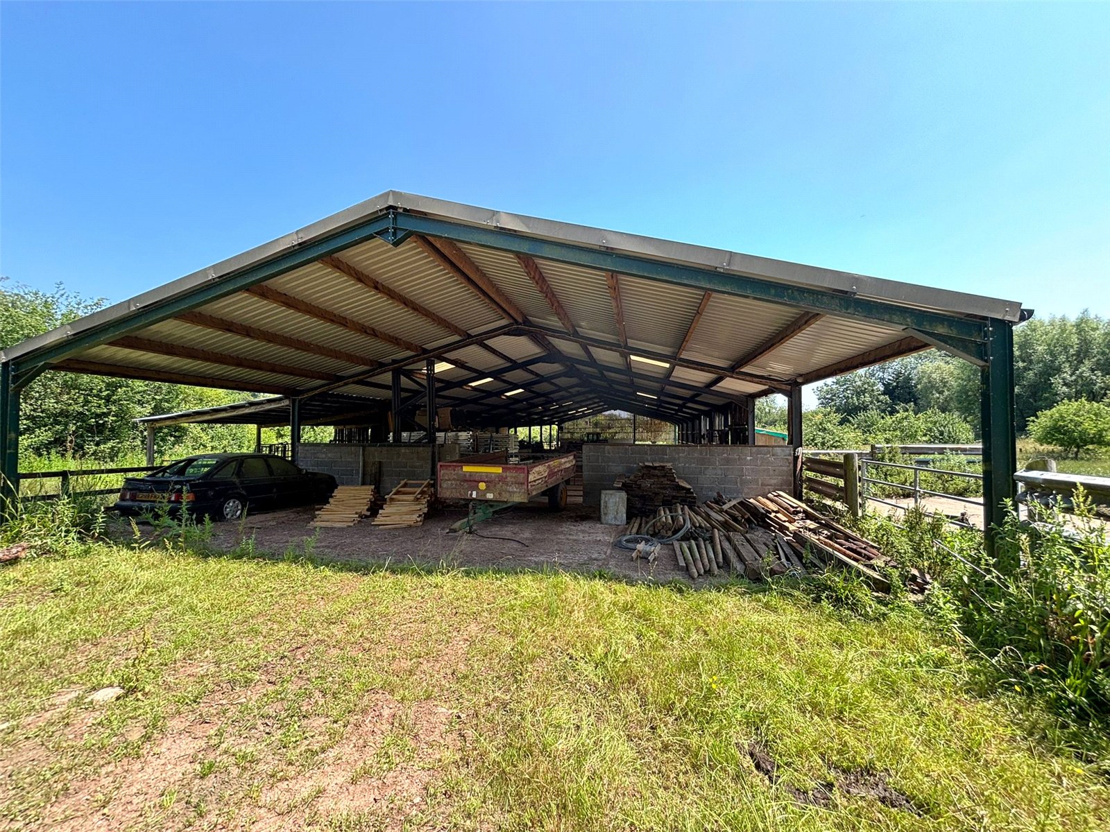 1. Steel framed Covered Yard (47.0m x 19.2m (154'1" x 62'11")) with fibre cement roof and part concrete block/panelled walls.