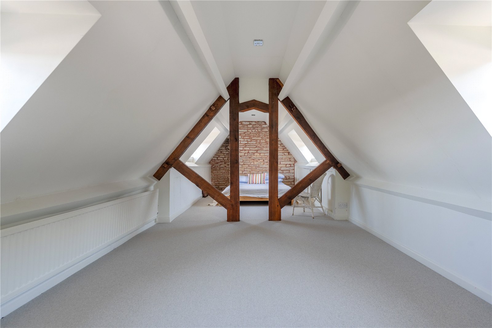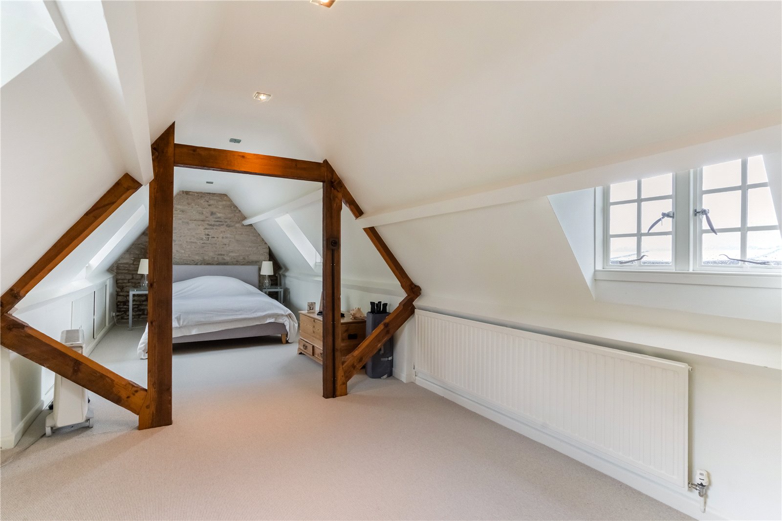 Bedroom accommodation is arranged over the upper floors and benefits from a flexible layout. The principal suite is particularly well considered, with its own staircase, dressing room, and high-quality en suite. Further bedrooms and bathrooms are arranged across the first and second floors, including guest accommodation within the attic, making the house well suited to both family living and visiting guests.