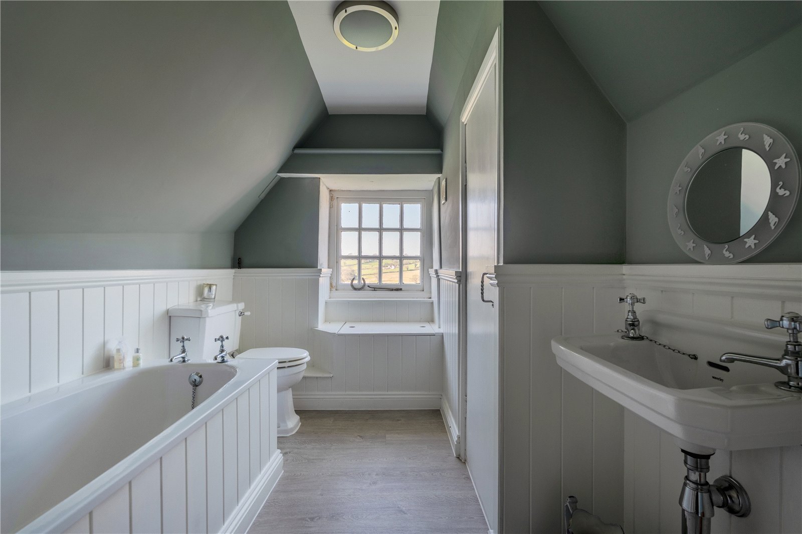 The grounds are both private and manageable, extending to approximately 2.1 acres and offering a wonderful balance of formal garden and recreational space. A broad sweep of lawn extends from the house, bordered by established planting and leading to a secluded seating area perfectly positioned to take in the far-reaching views.