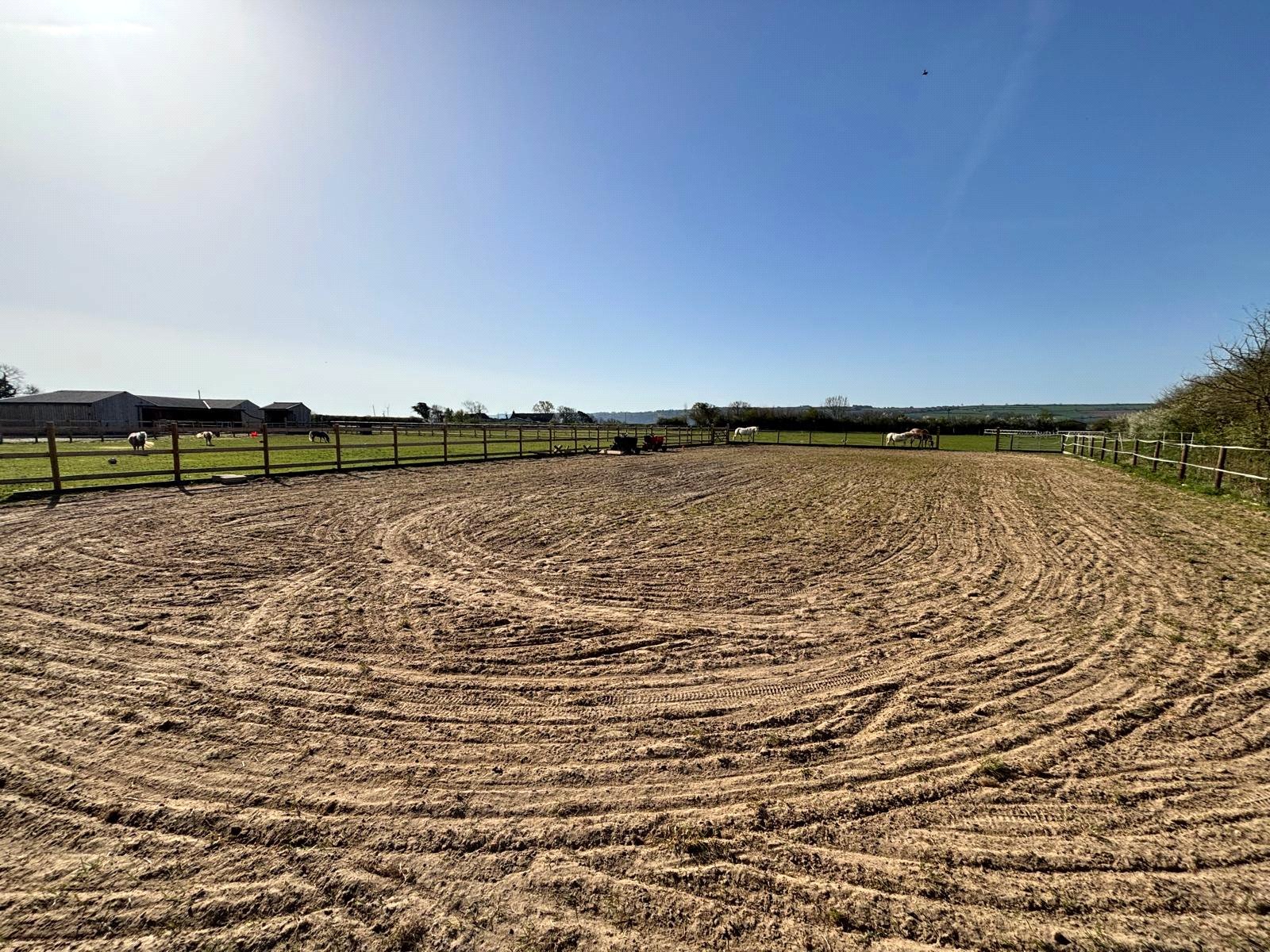 In addition, the property benefits from a 40m x 20m sand school, together with field shelters and associated ancillary facilities, making it well suited for private equestrian or leisure use. A static caravan is also located on site, providing basic welfare facilities including a WC and kitchenette. The land is enclosed by a combination of post and rail fencing and established boundaries and enjoys open views over the surrounding countryside. The yard and entrance are served by CCTV and security lighting, providing an added level of security and practicality for day-to-day use.