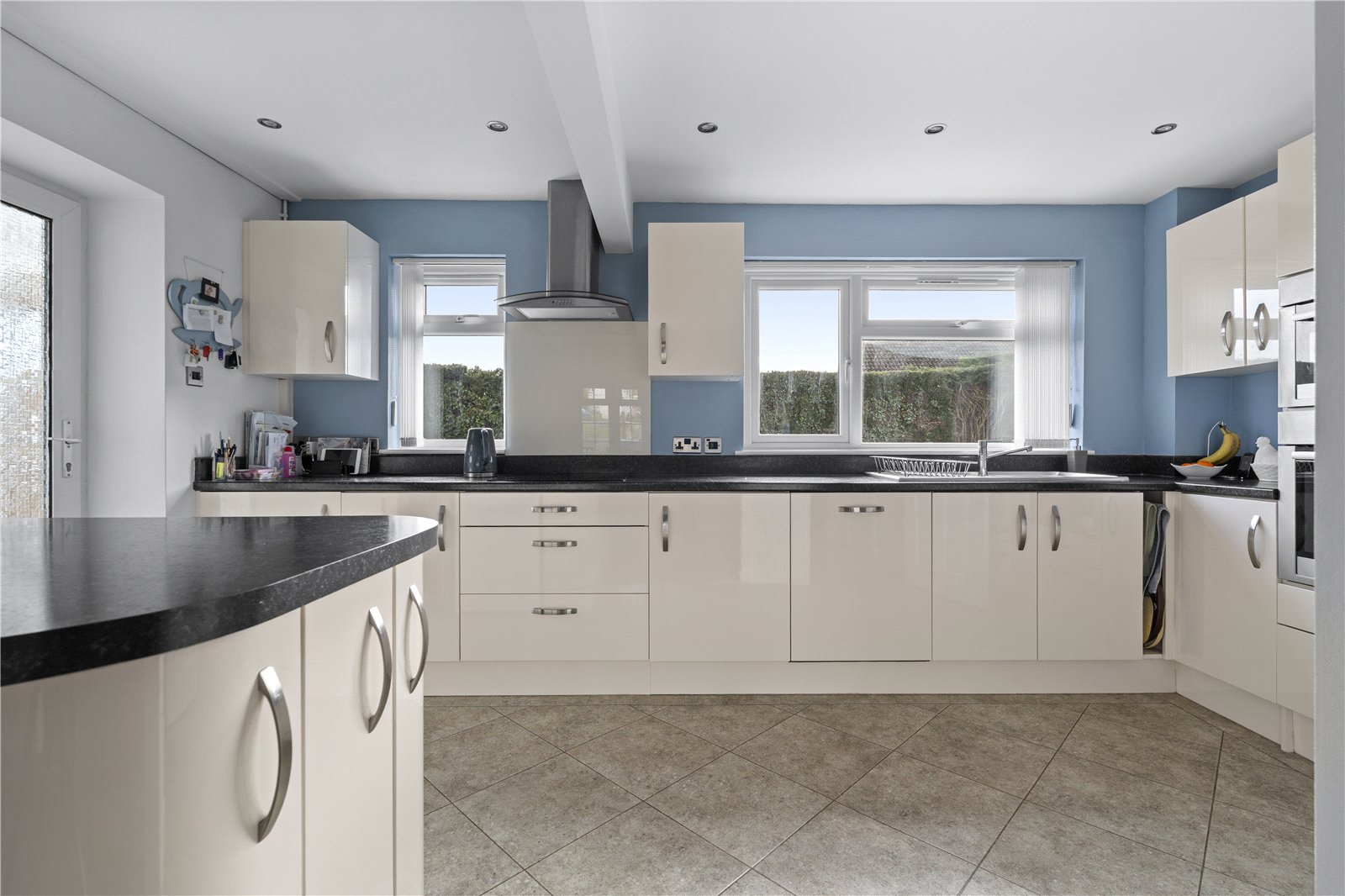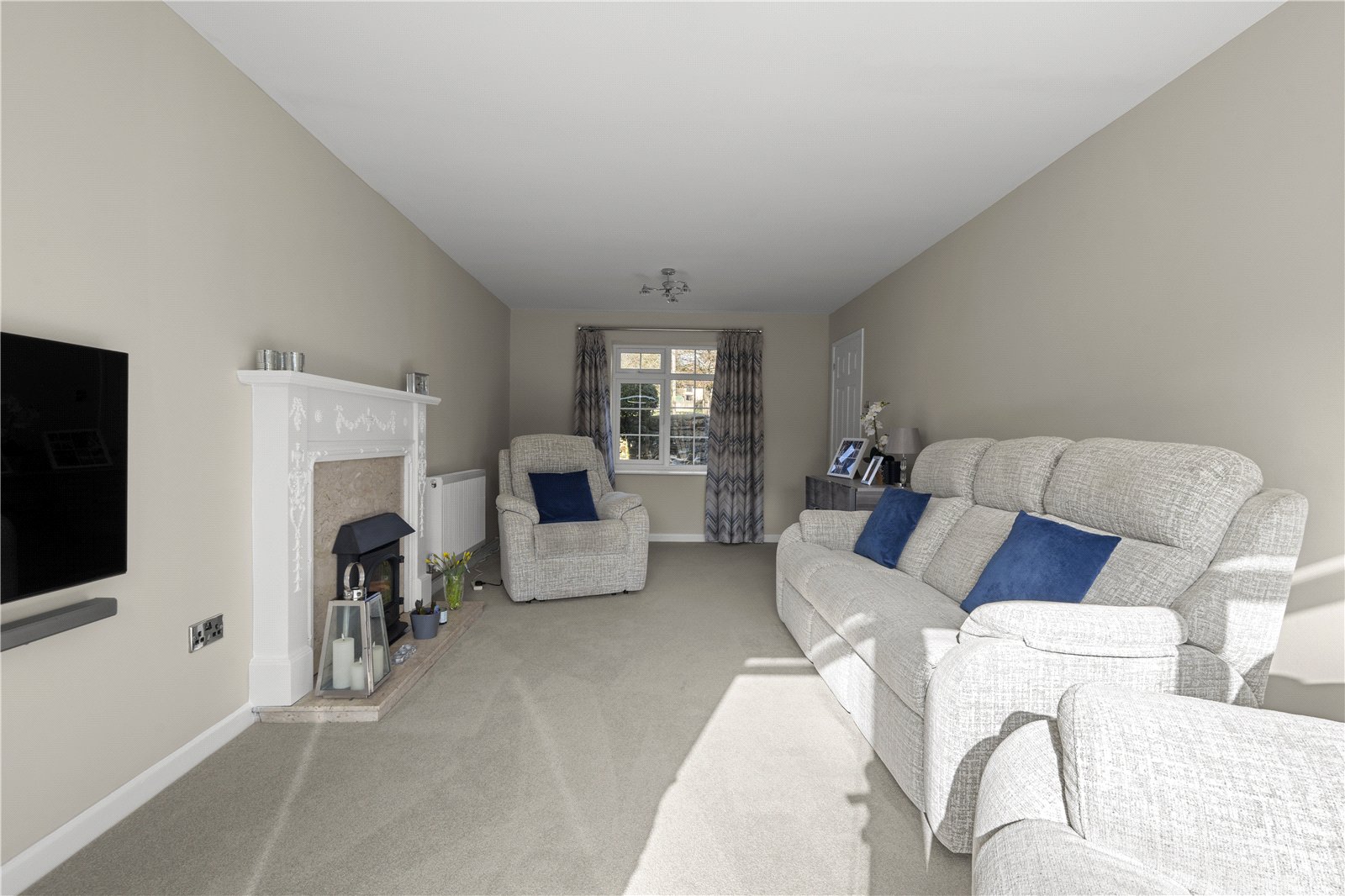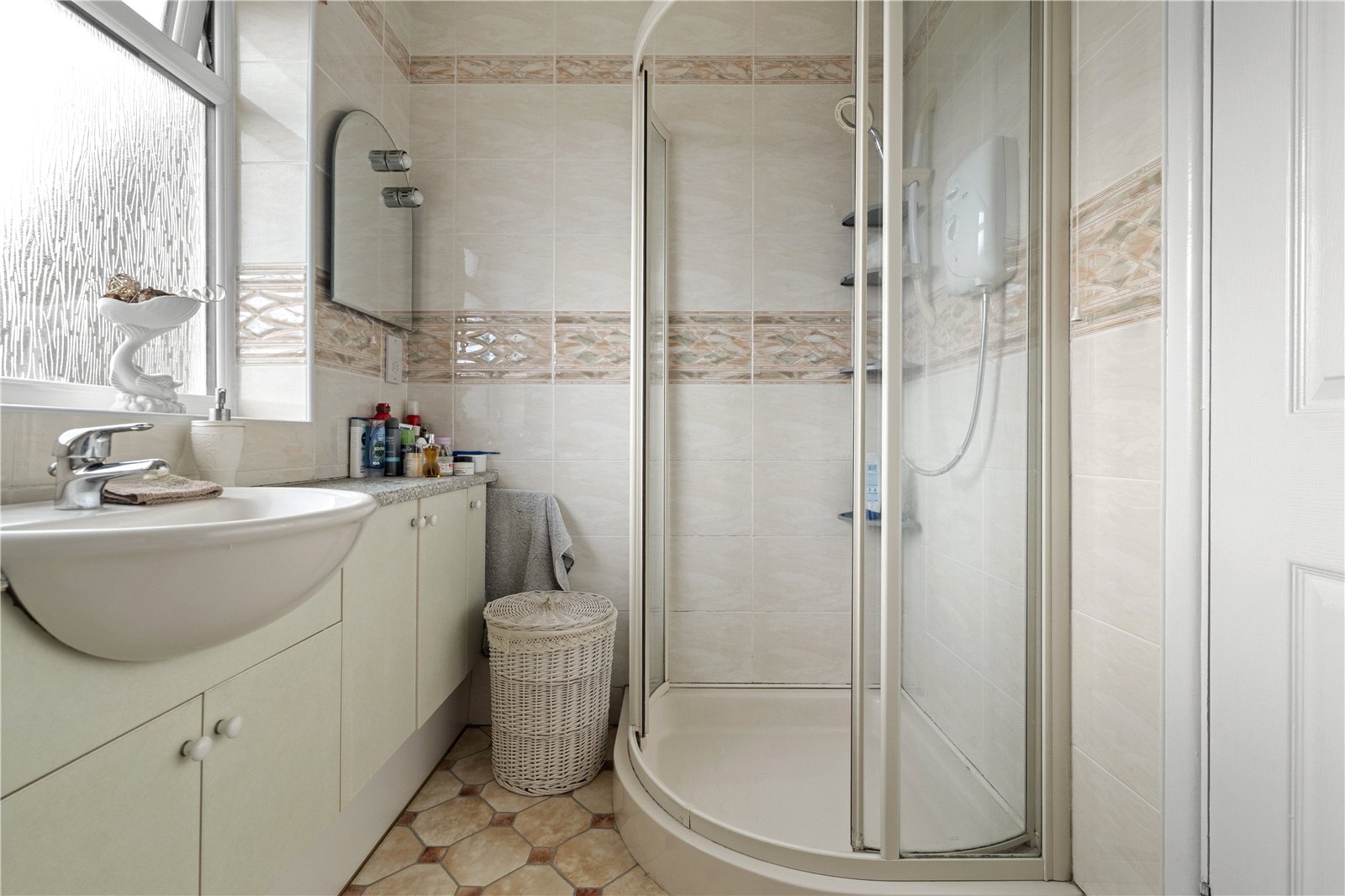 On the first floor, the principal bedroom is a spacious double with built-in wardrobes and a large en suite shower room. There are two further large double bedrooms, one of which also benefits from built-in wardrobes, all served by a well-appointed family bathroom.