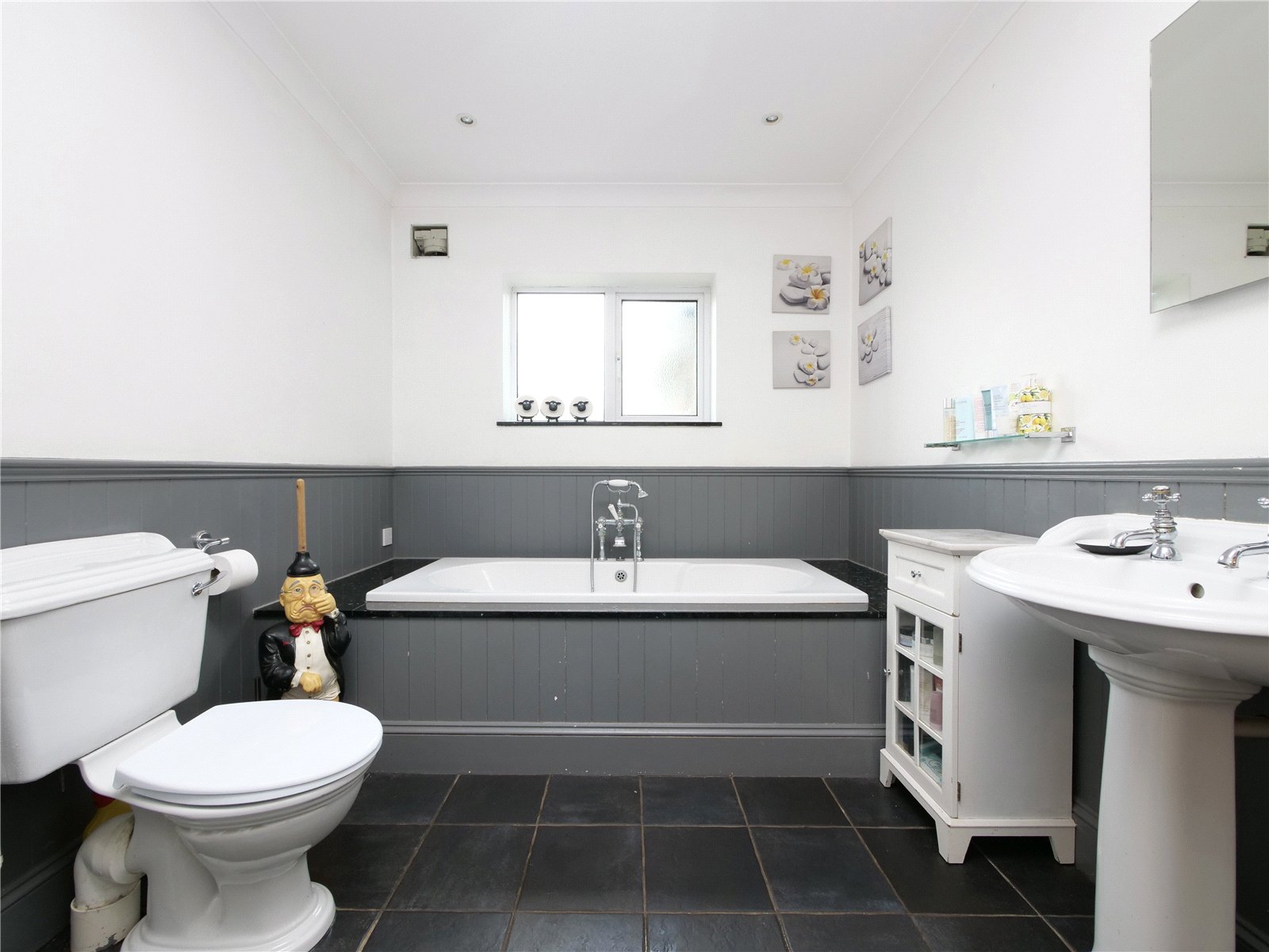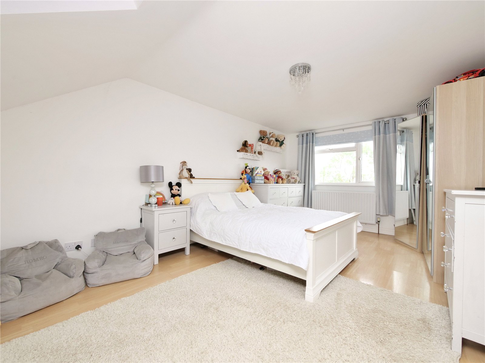 Upstairs, a large double bedroom captures views towards the reservoir, while a further double bedroom, tucked under the eaves, overlooks the rear garden.