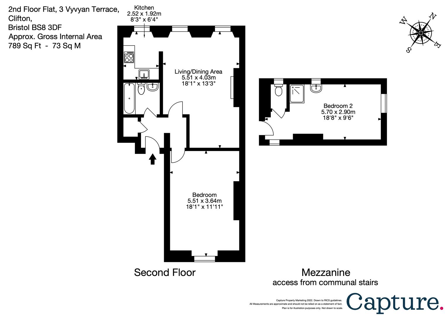 A spacious, two-bedroom, second floor flat, within this iconic Grade II* listed terrace in the very heart of Clifton