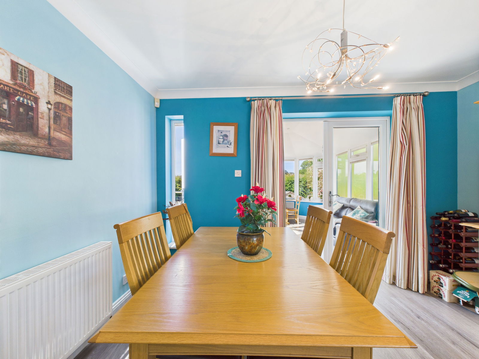 SUNROOM A beautifully appointed sunroom ideal as a second sitting area, with triple aspect uPVC double glazing providing views of the immaculate rear garden. French doors open directly to the patio area. Features include overhead lighting and a gas central heated radiator.