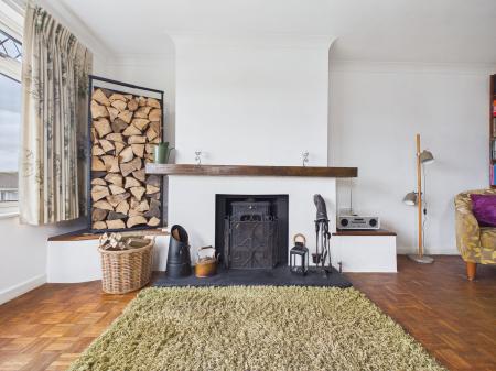 LOUNGE/DINER - 5.1m x 4.21m (16'8" x 13'9") Log burner stove with surround. Central heating radiator. uPVC double glazing with open outlook.
