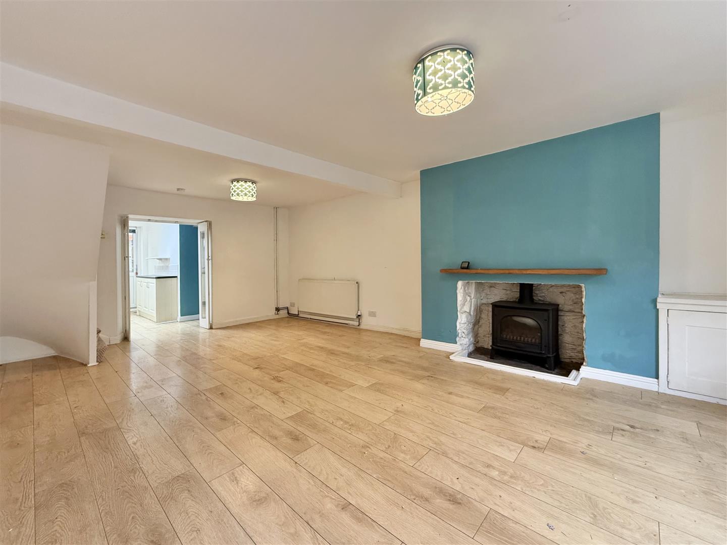 The cottage strikes a perfect balance between living space and bedroom accommodation. The open-plan living room is filled with natural light, creating a welcoming and airy atmosphere, boosted by a charming feature wood burner. It's a spacious area, complete with a designated dining section, which flows seamlessly into a modern kitchen. The kitchen features ample fitted units and worktops, and benefits from a new flat roof and large skylight installed within the last six months, enhancing the natural light.