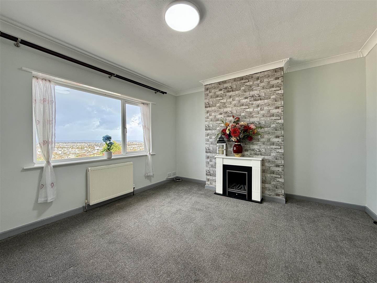 The living room enjoys a particularly attractive open outlook across Brixham towards Paignton, Torquay and Torbay, with further views stretching across Lyme Bay. It features a radiator beneath the window, a gas fire, and a TV point.
