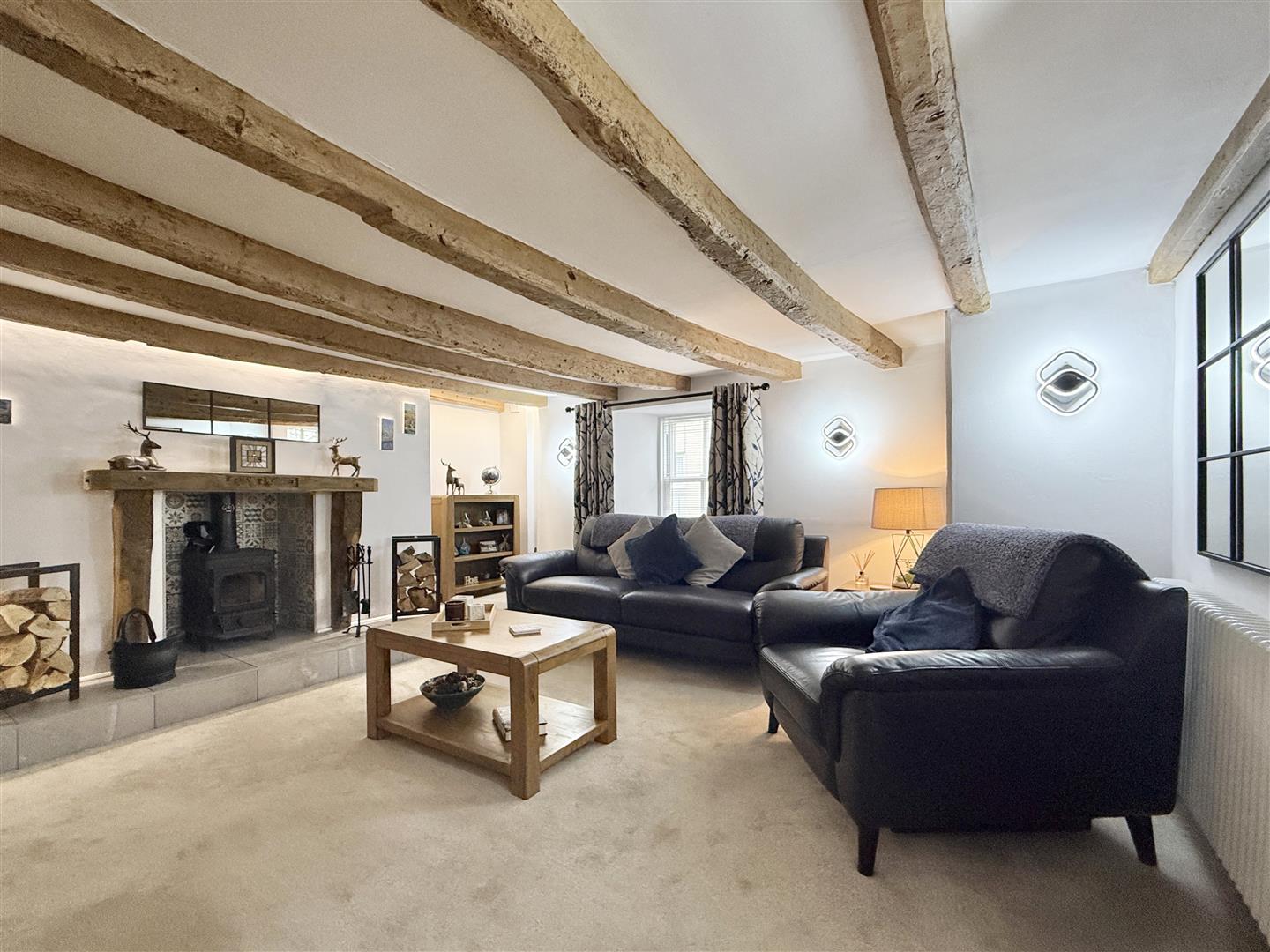 Outside, the rear terrace provides a wonderful setting for al fresco dining, framed by attractive limestone wall boundaries and planted borders. Steps lead down to the beautifully level garden, where winding paths pass well established planting, creating a truly enchanting outdoor space. A further seating area offers a peaceful spot to relax, to BBQ and to enjoy the views across the garden. Adding further character is the historic gardener's store with flagstone flooring, while an arched gate leads through to the generous parking area beyond. A rare opportunity to own a beautifully restored Tudor cottage, combining over four centuries of history with the comforts and finish of modern living.