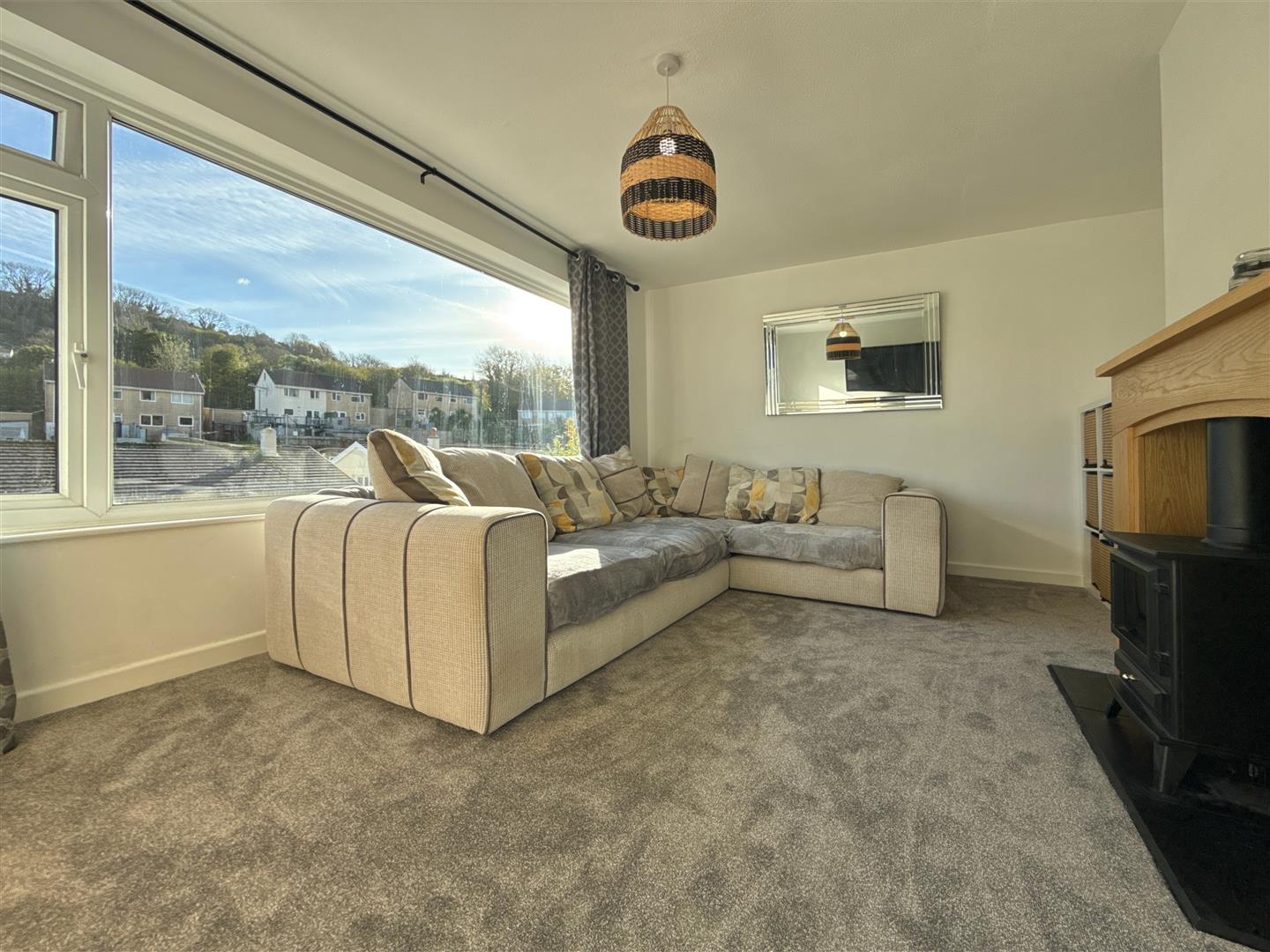 The generously sized living room at the front of the property enjoys a sunny, southerly open aspect with views towards the picturesque Devonshire hills. A cosy electric flame-effect fire adds warmth and charm, making it the perfect spot to unwind in the evenings.