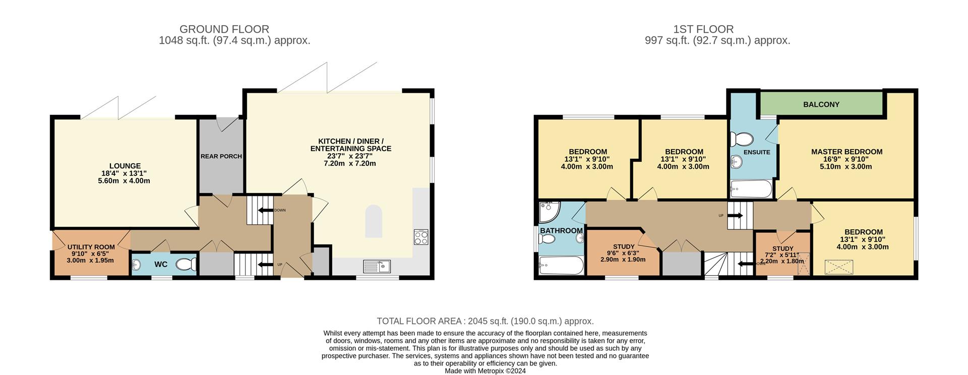 The first floor boasts four good size double bedrooms, including the master bedroom with bi-folding balcony overlooking the rear garden and taking in a superb view South as well as a generously sized en-suite bathroom. There is a stylish family bathroom and two versatile studies/home office's which would suit families with more than one person working from home.