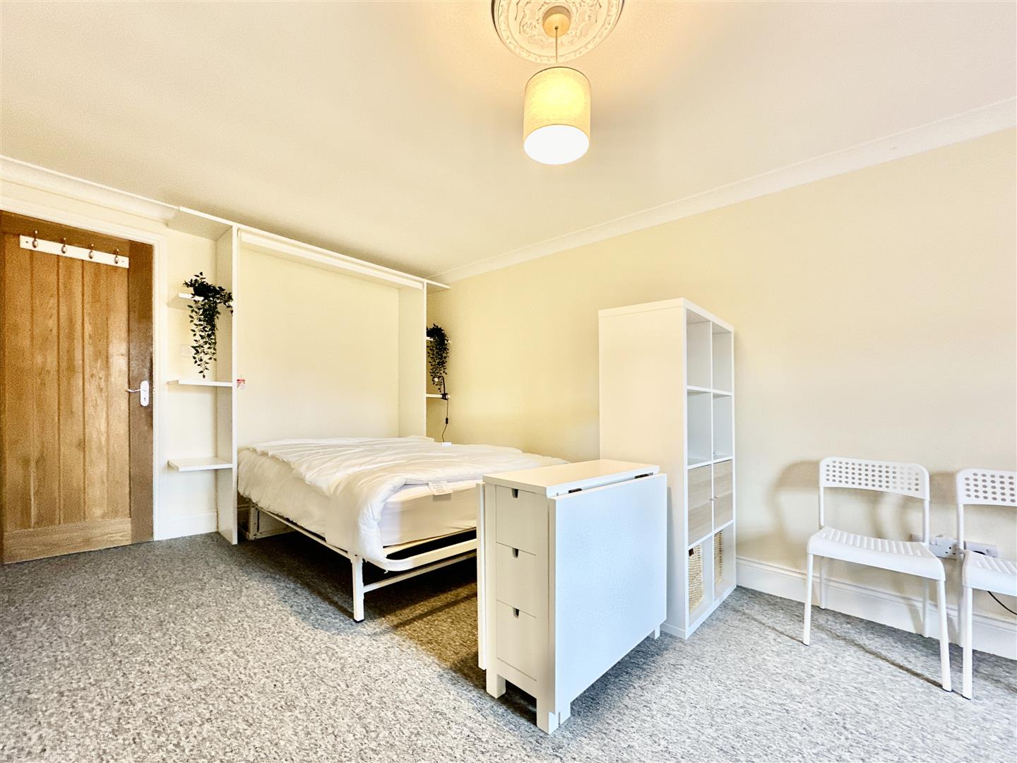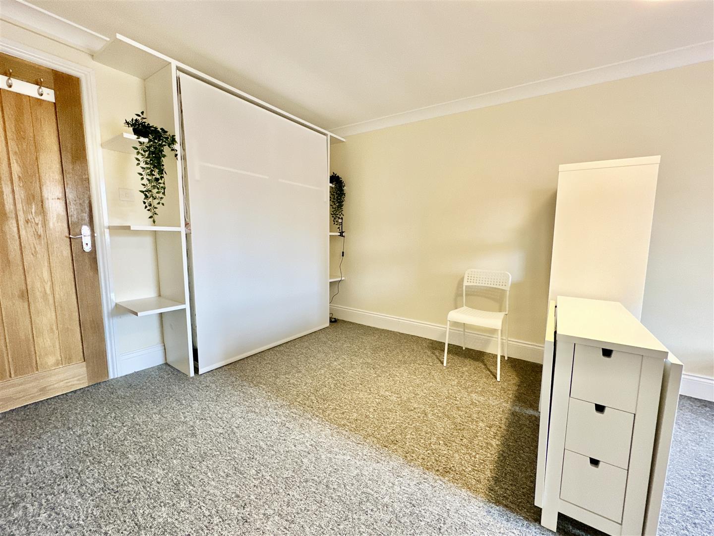 The main studio area is a good size and has space for both living and bedroom furniture, or a fold down sofa bed. The kitchen is small but perfectly formed with space for all the kitchen essentials, and a further storage cupboard housing the electric meter and hot water cylinder. The shower room comes complete with a walk in shower cubicle, WC & sink.