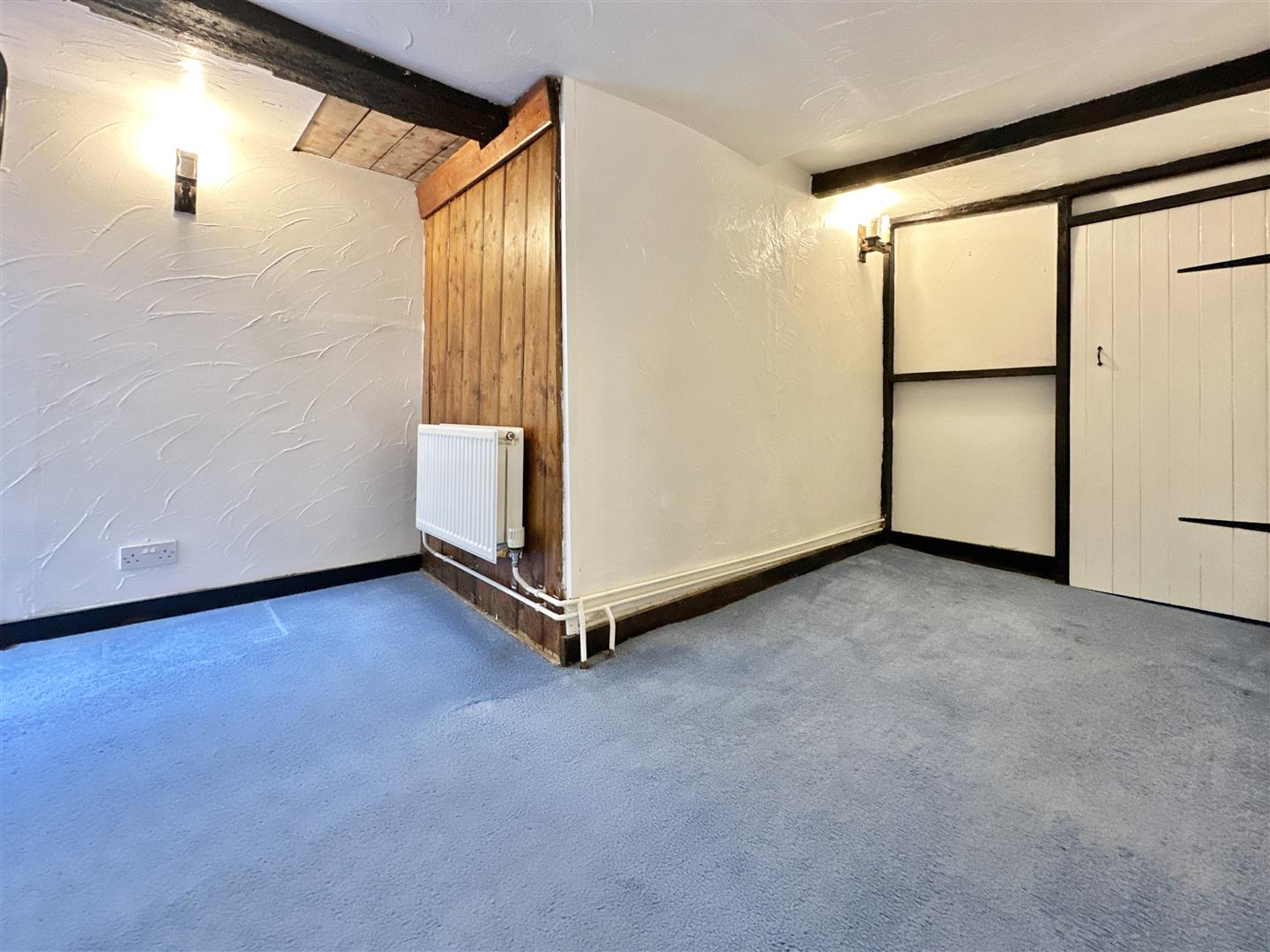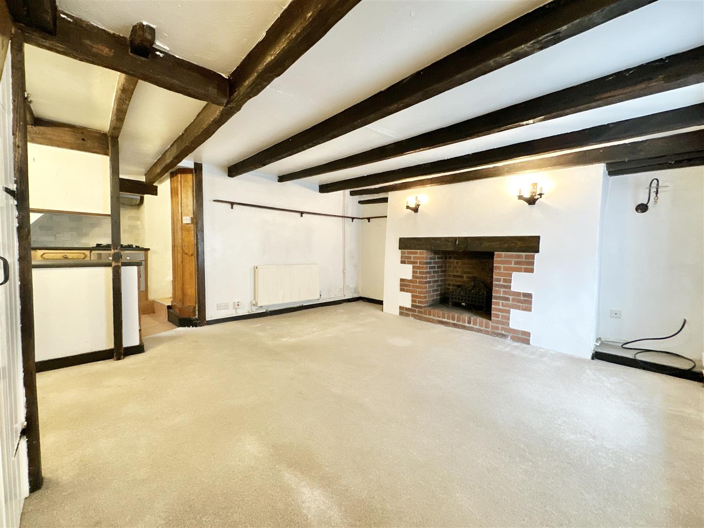 The property itself opens through a traditional stable door into a large living room, with characterful cottage beams and a large open fireplace. There is a traditional bay window overlooking the street scene and stairs leading up to the first floor. Also on the ground floor is the kitchen area to the rear. Open to the lounge, and equipped with a Bosch oven and 4-burner gas hob. There is also a rear porch leading out to the rear garden, and a very handy downstairs WC, where the gas combi-boiler is also housed.