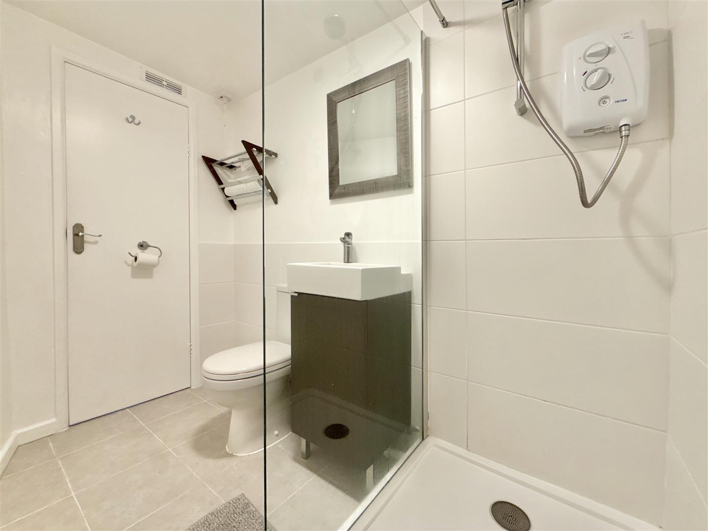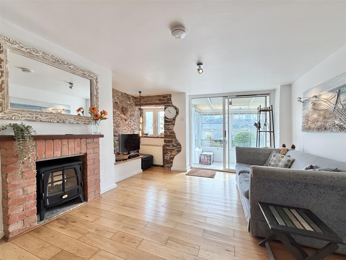 A conservatory or sun room provides an additional bright and versatile space, ideal for relaxing or enjoying views over the garden. The double bedroom is well proportioned and served by a smart, modern shower room with a walk-in enclosure. The property also benefits from electric night storage heating.