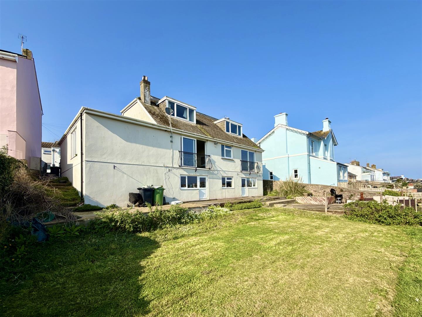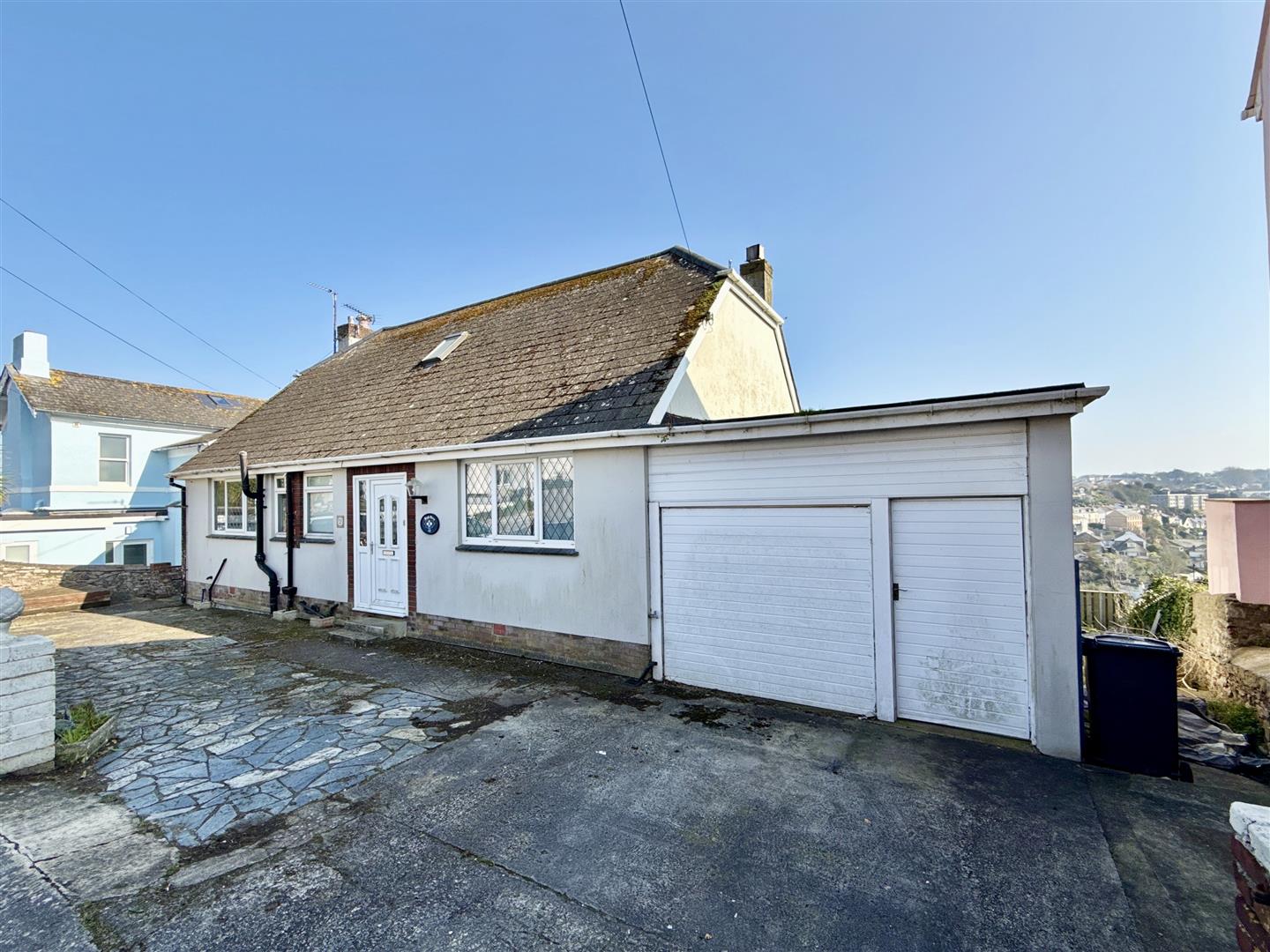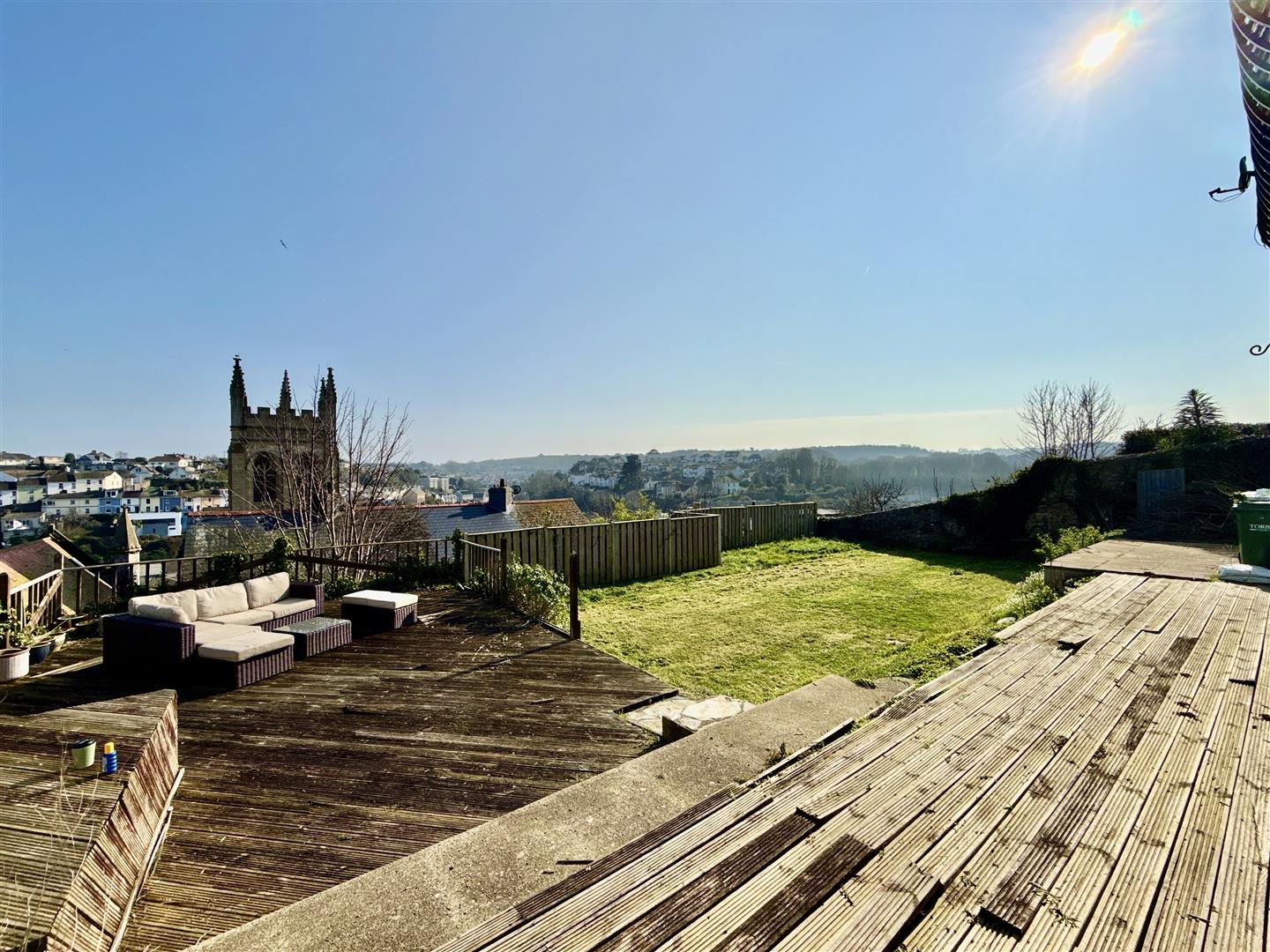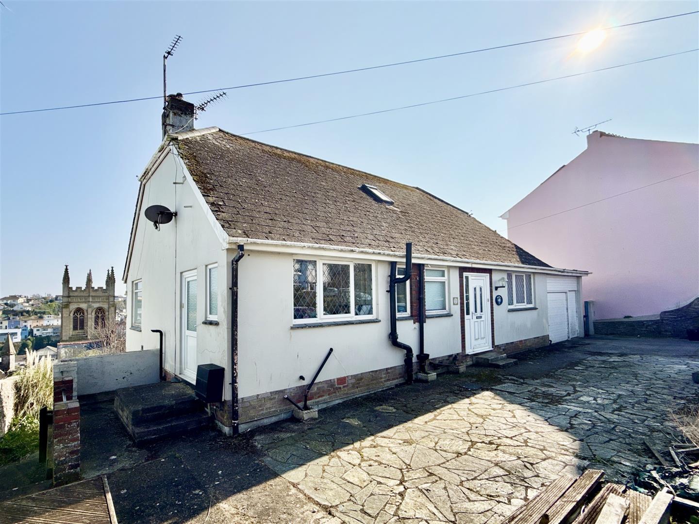 Externally, the property truly excels. The large plot provides a generous rear garden with a sunny, open aspect, perfectly suited for landscaping, outdoor entertaining, or further development. Elevated positioning allows for far-reaching open views across Brixham and towards Hillhead, adding to the home's appeal.