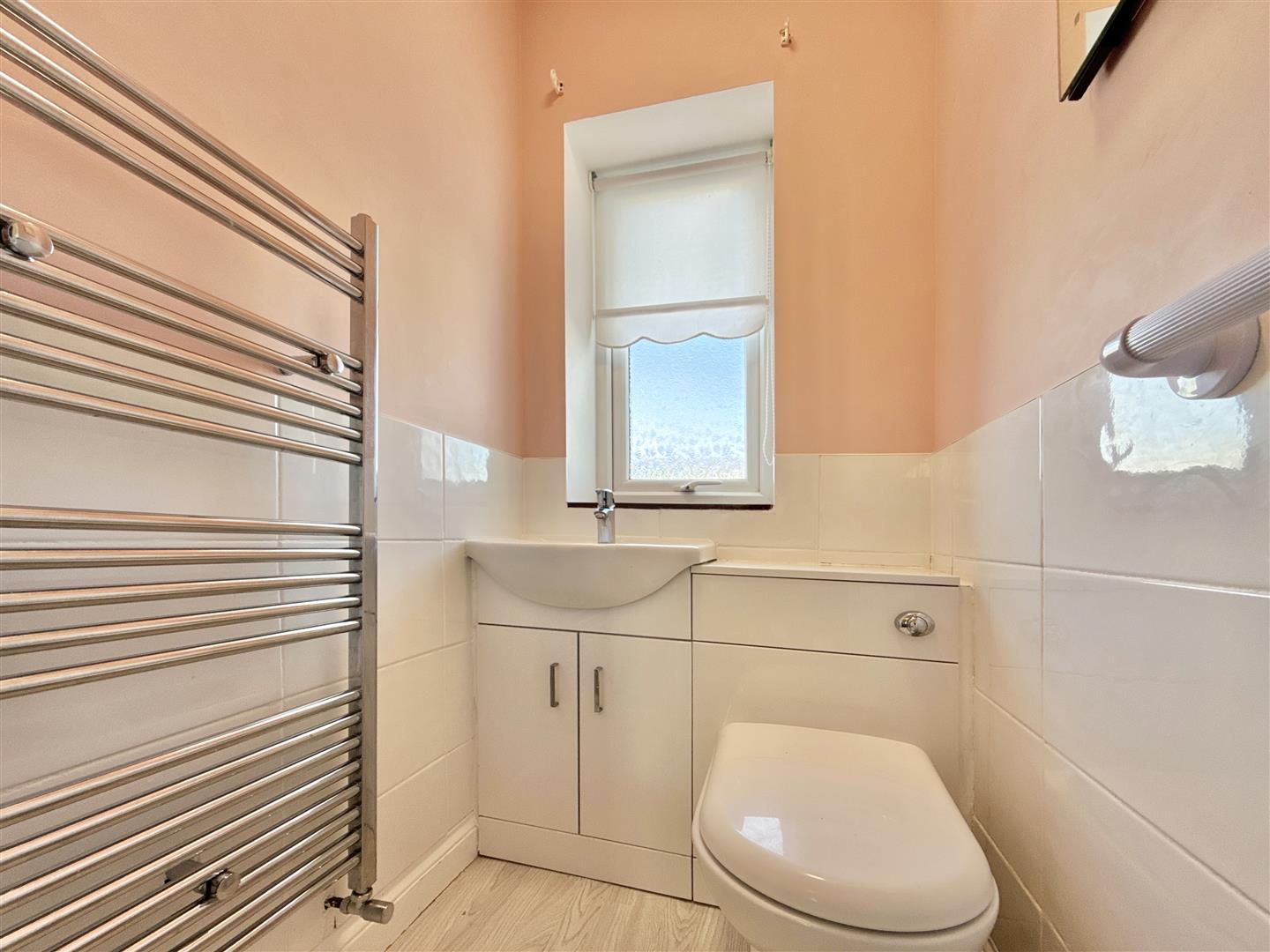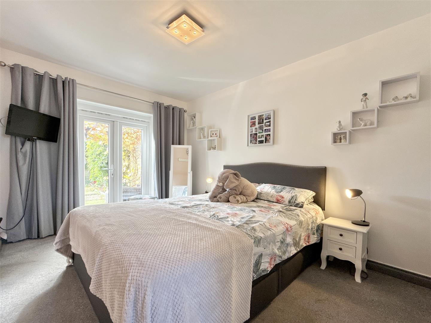 The accommodation is thoughtfully designed with comfort and style in mind. The master bedroom features an ensuite WC, a spacious walk-in wardrobe, and elegant French doors that open directly onto the rear garden's enclosed seating area. Two additional double bedrooms provide flexible living options, perfect for a growing family, guest rooms, or even a home office. The bathroom is finished to a high standard, boasting a stylish and modern walk-in double shower, adding a touch of luxury to the home.