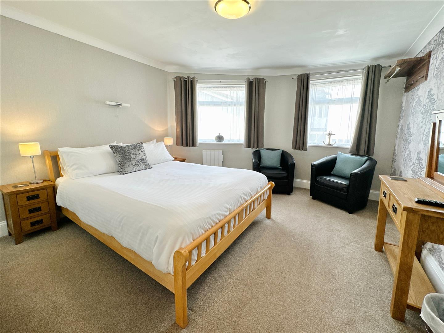 King Room (Room 4): The King Room has an en suite shower room, with a 'lounge' area. The room accommodates a king size bed, wardrobe, dressing table, TV, minifridge, tea and coffee making facilities, seating and a coffee table. This room is on the second floor.