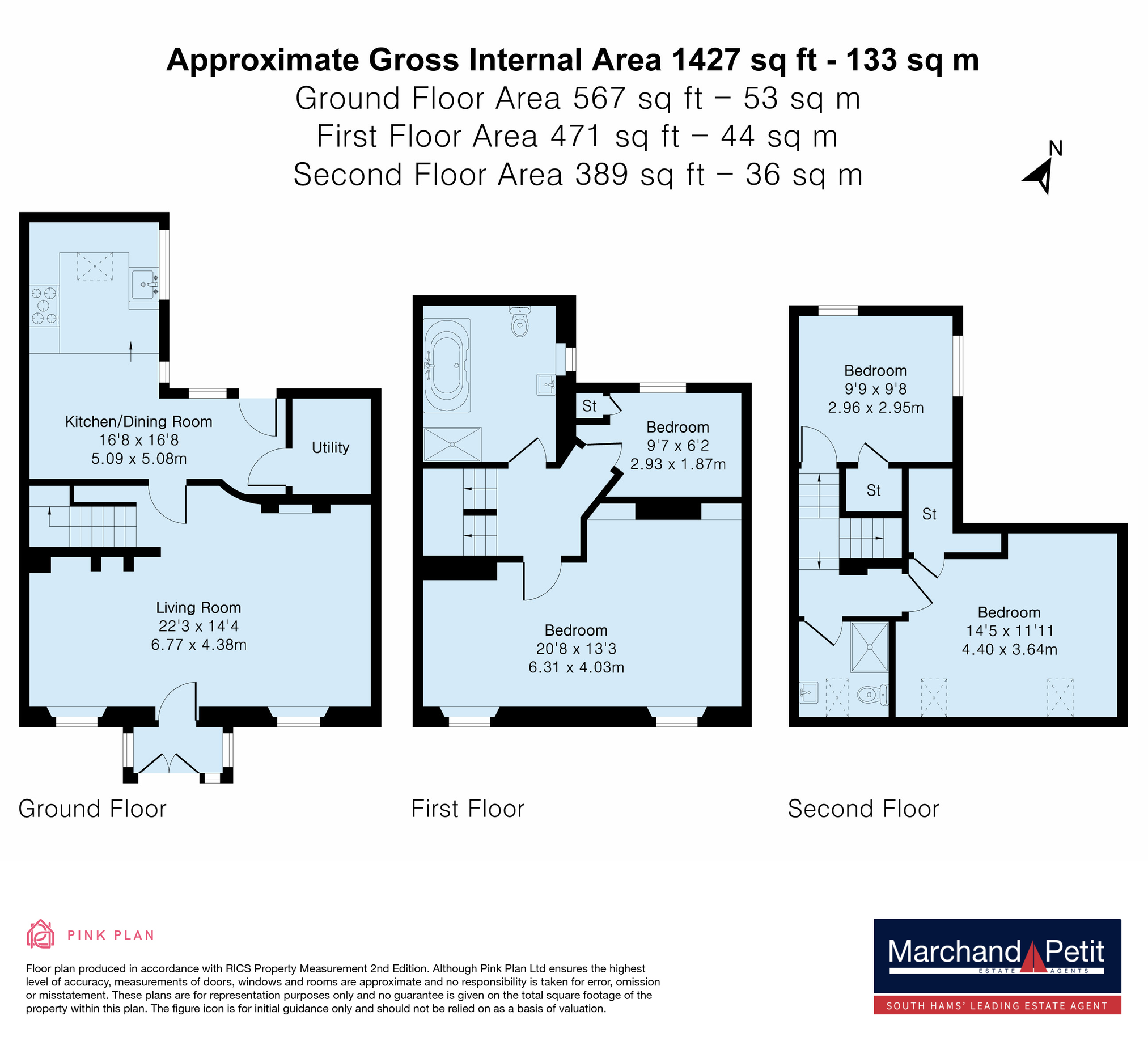 - Four bedrooms arranged over two upper floors