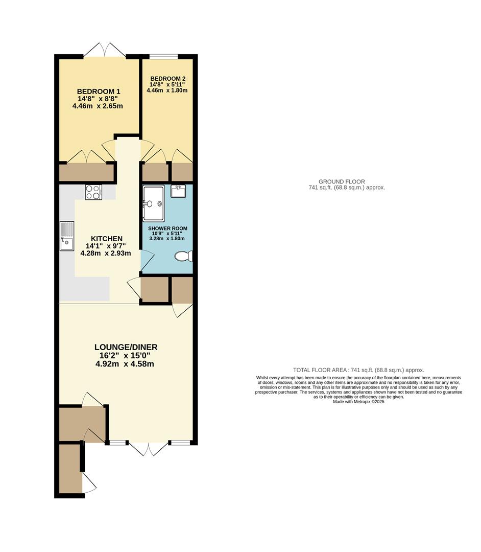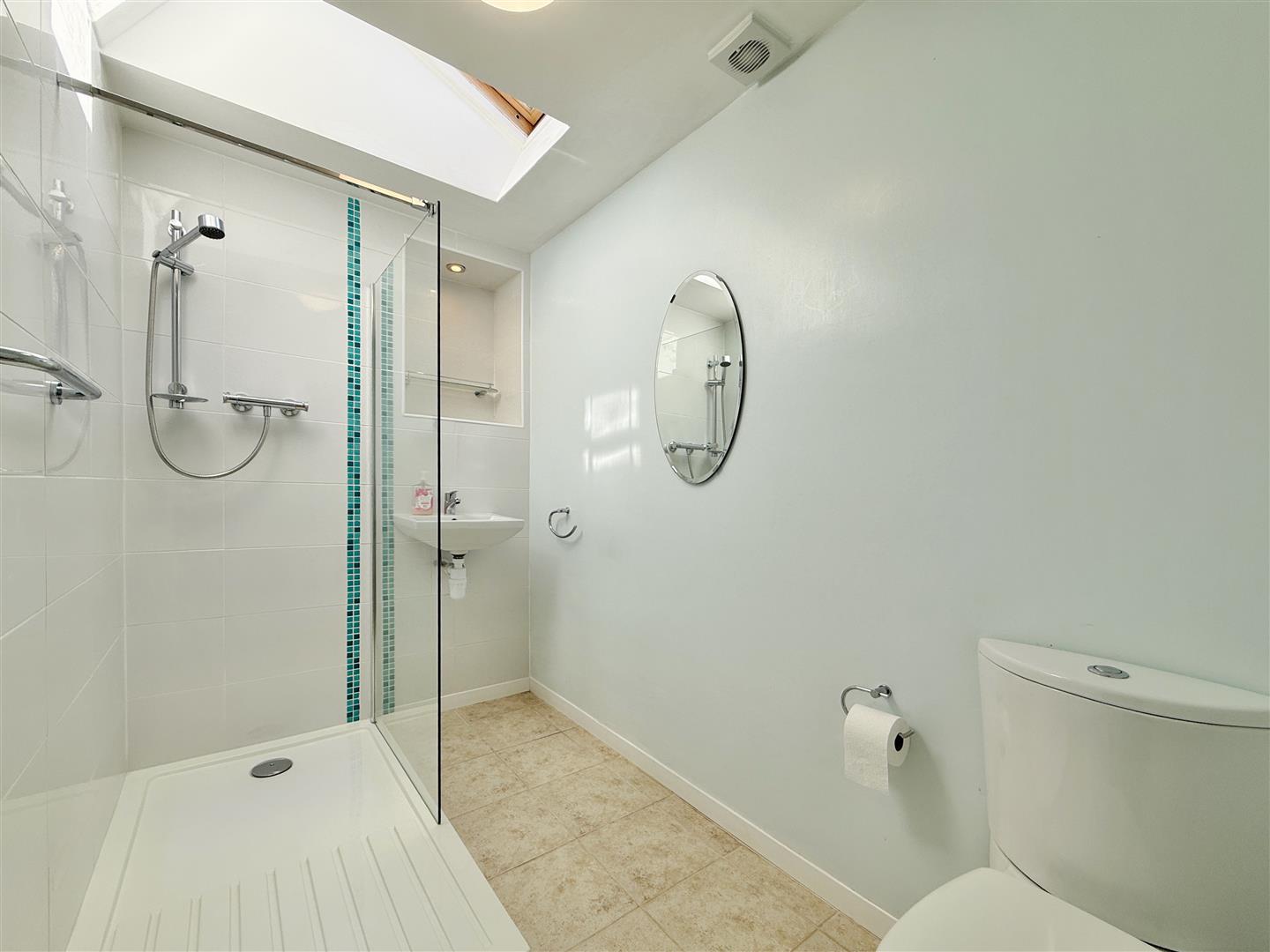 A stylish, modern shower room has been fitted with a walk-in shower, offering both practicality and a touch of luxury. The property also includes two well-proportioned bedrooms, both featuring built-in storage, providing excellent functionality without compromising on space.