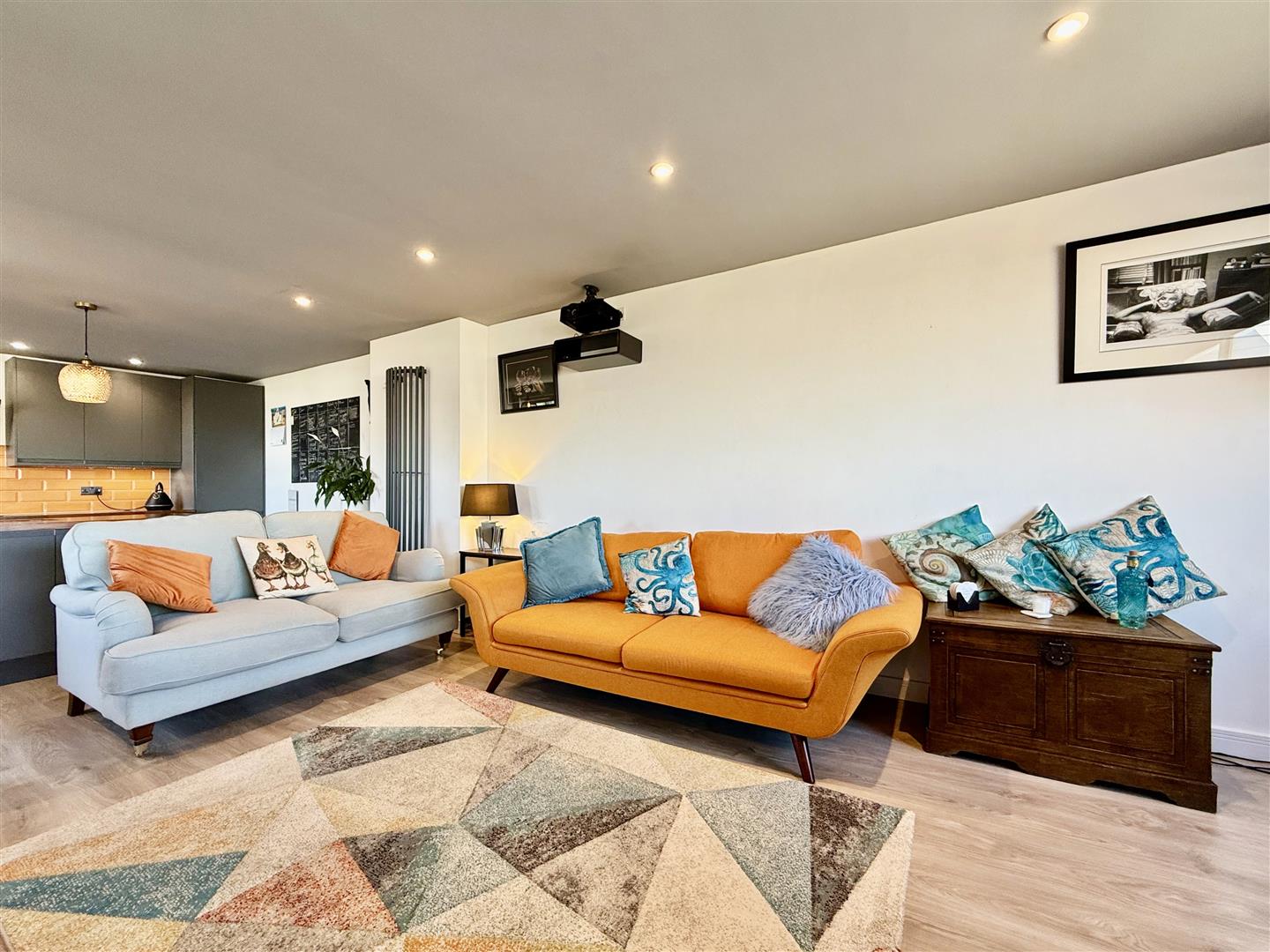 As you step through the modern composite front door, you're welcomed into a bright and practical entrance hall with stylish wood-effect flooring, built-in storage, and subtle lighting that adds a warm, inviting feel. There's a utility cupboard tucked away for your laundry essentials, and direct access out to the private, sunny and sheltered rear garden.