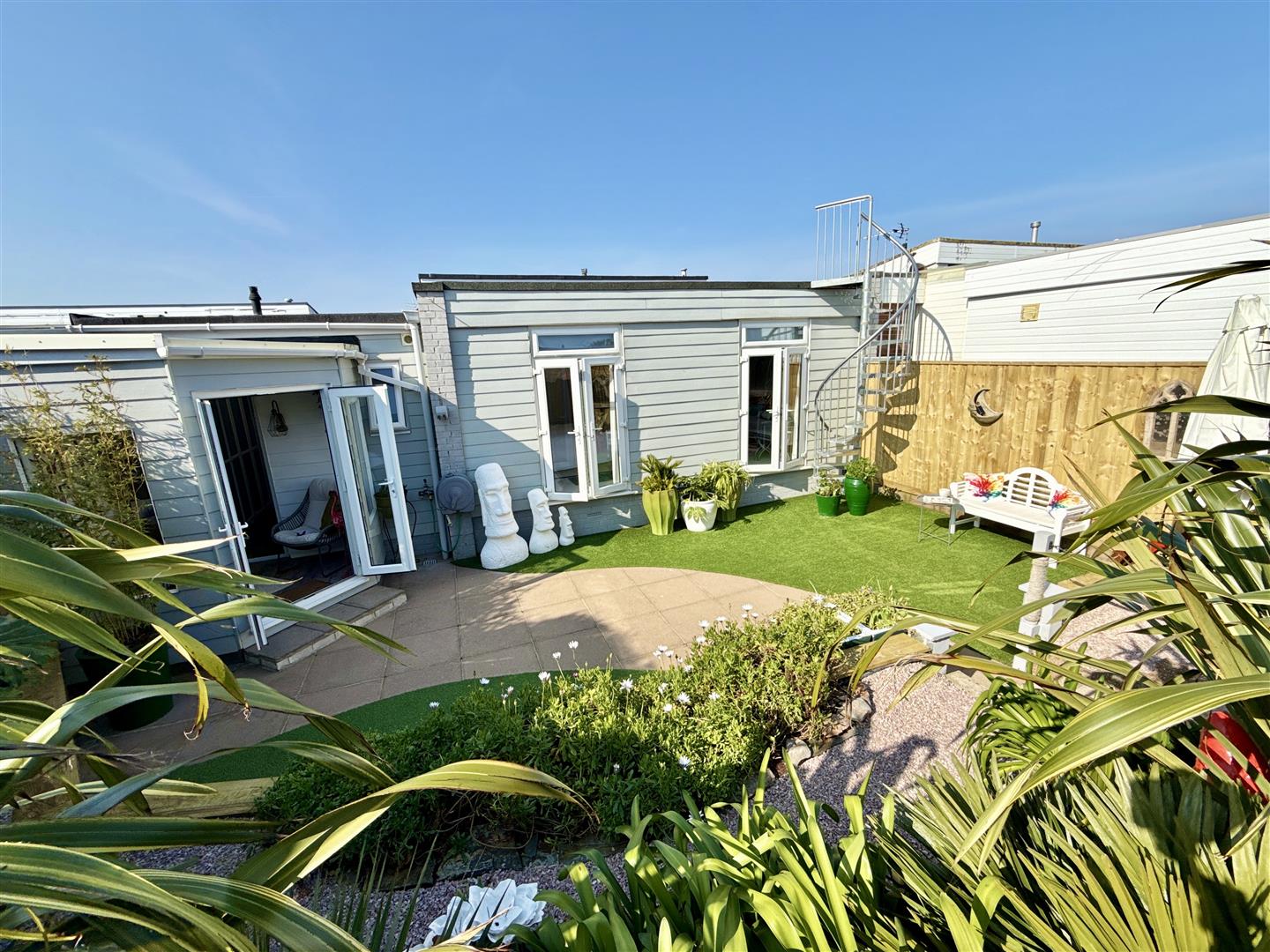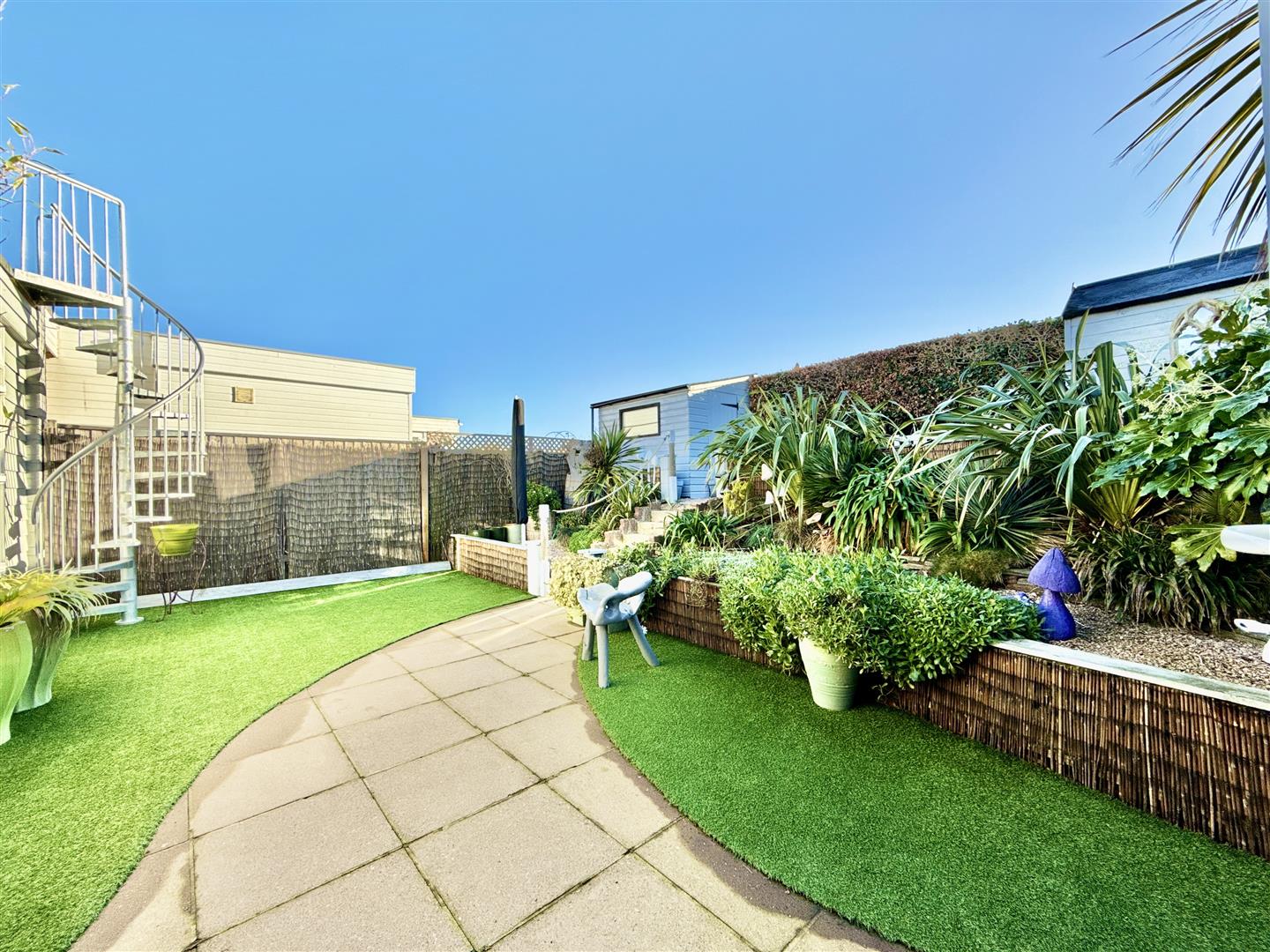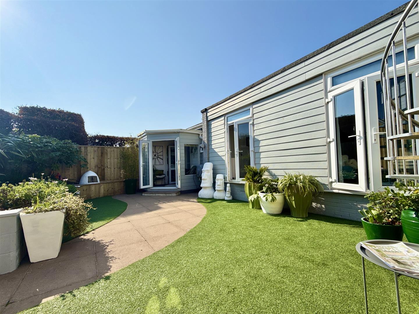 The rear of the property is another recent improvement by our vendor, who has cleverly added a useful hallway providing plenty of storage options, leading through to a wonderful garden room, opening out through French doors to the rear garden. South-facing (so enjoying plenty of sunshine) and very private, the garden here is of particular note. Beautifully landscaped over two levels and broken with a colourful display of greenery, the lower patio area is perfect for quiet afternoons in the sunshine or hosting BBQ's. The higher level is a shaded area laid to gravel and occupying two useful garden sheds. The property enjoys the unusual benefit of a galvanised steel spiral staircase, elevating you to a large roof terrace which takes in improved views over Torbay. The roof terrace currently offers a 'blank canvass' ready for a new buyer to adopt as they wish.