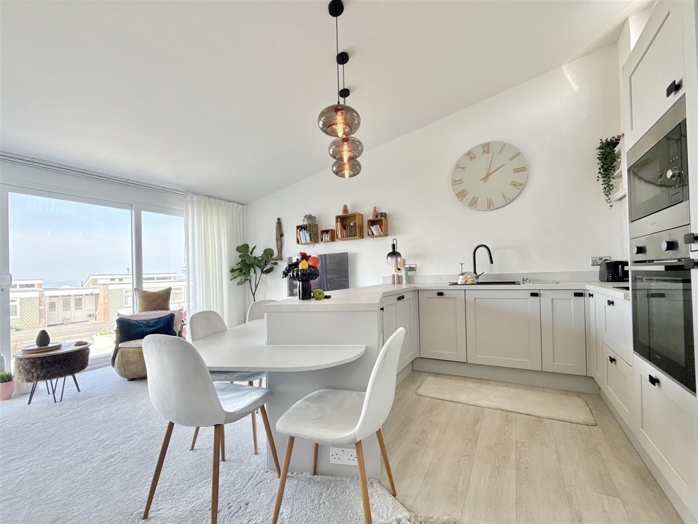 Entering in to a spacious and welcoming entrance hall, the quality and tranquil style becomes immediately apparent. The space leads through all all of the principal living accommodation with the main living space occupying the front of the property. A modern and incredibly impressive open-plan room, enjoying plenty of natural light and taking in superb views over Torbay. There is a recently installed high-quality kitchen, offering plenty of worktop and cupboard space, creating a central peninsular which is perfect for entertaining around. Sliding patio doors lead out to the low maintenance terrace and feature garden to the front.