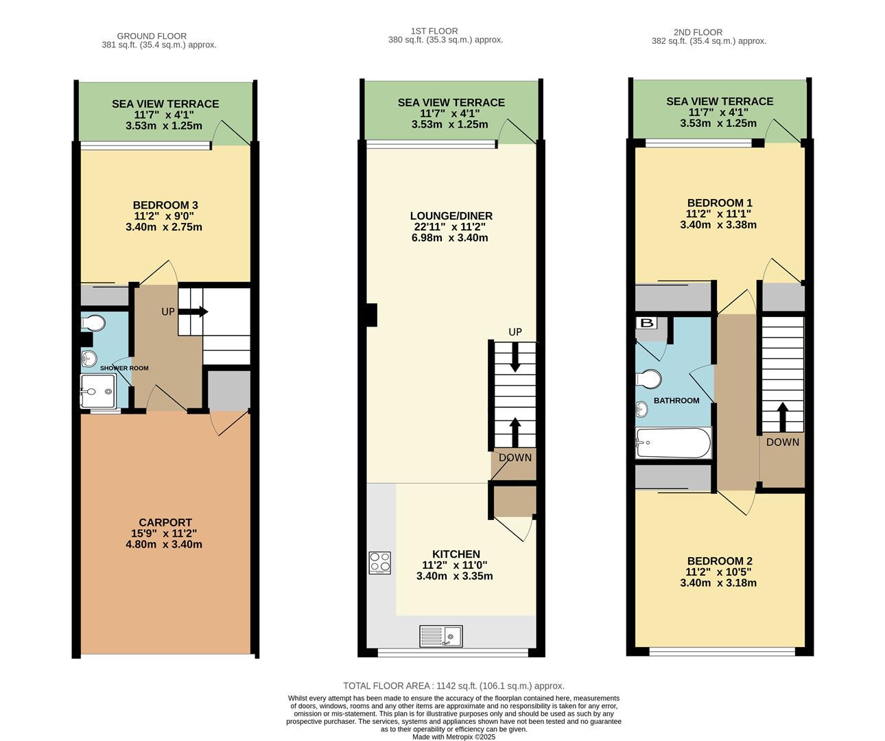 The property is bright and spacious, featuring three generously-sized bedrooms - one on the ground floor and two on the second floor - all with ample built-in storage. The middle floor includes an open-plan living and kitchen area, while the ground floor offers a large carport with handy storage space. Additionally, there is a stair lift to the first floor, ideal for visitors with limited mobility. The property also boasts three newly installed sea-view balconies, providing the perfect spots to relax and take in the stunning vistas. This low-maintenance town house offers all the key features that prospective buyers in Brixham are seeking.