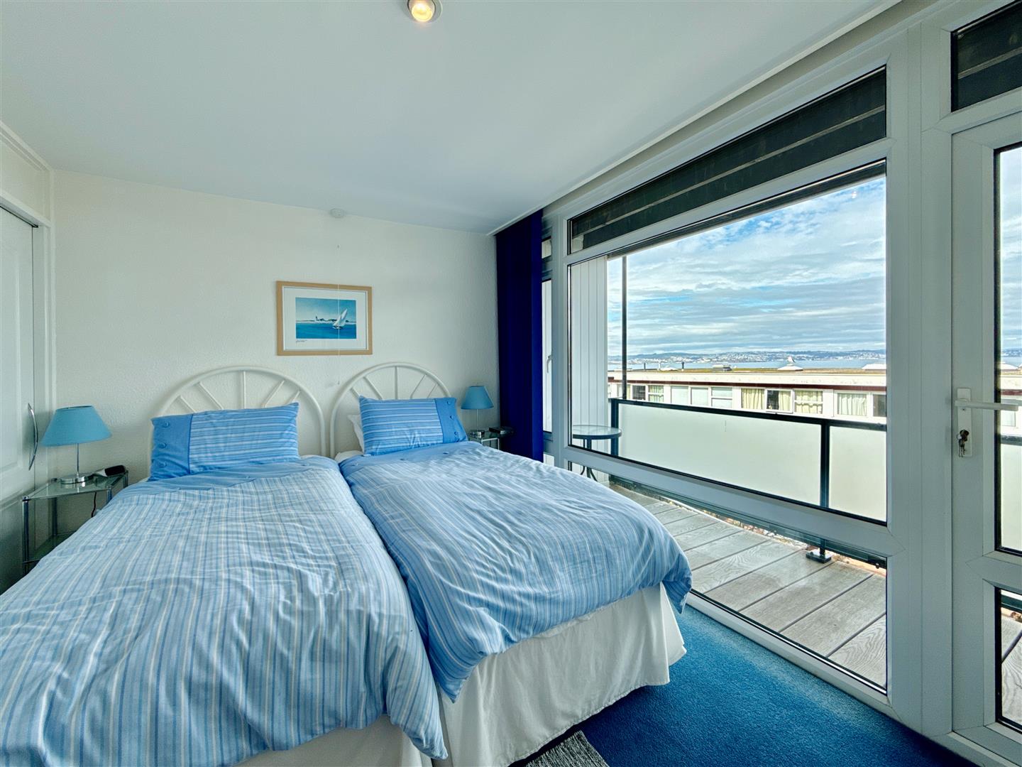 SEA VIEW TOWN HOUSE with 3 newly fitted balconies. There are 3 bedrooms and 2 bathrooms, and with a ground floor bedroom and stair lift to the first floor the property is ideal for visitors with limited mobility. CAR PORT PARKING. No onward chain.