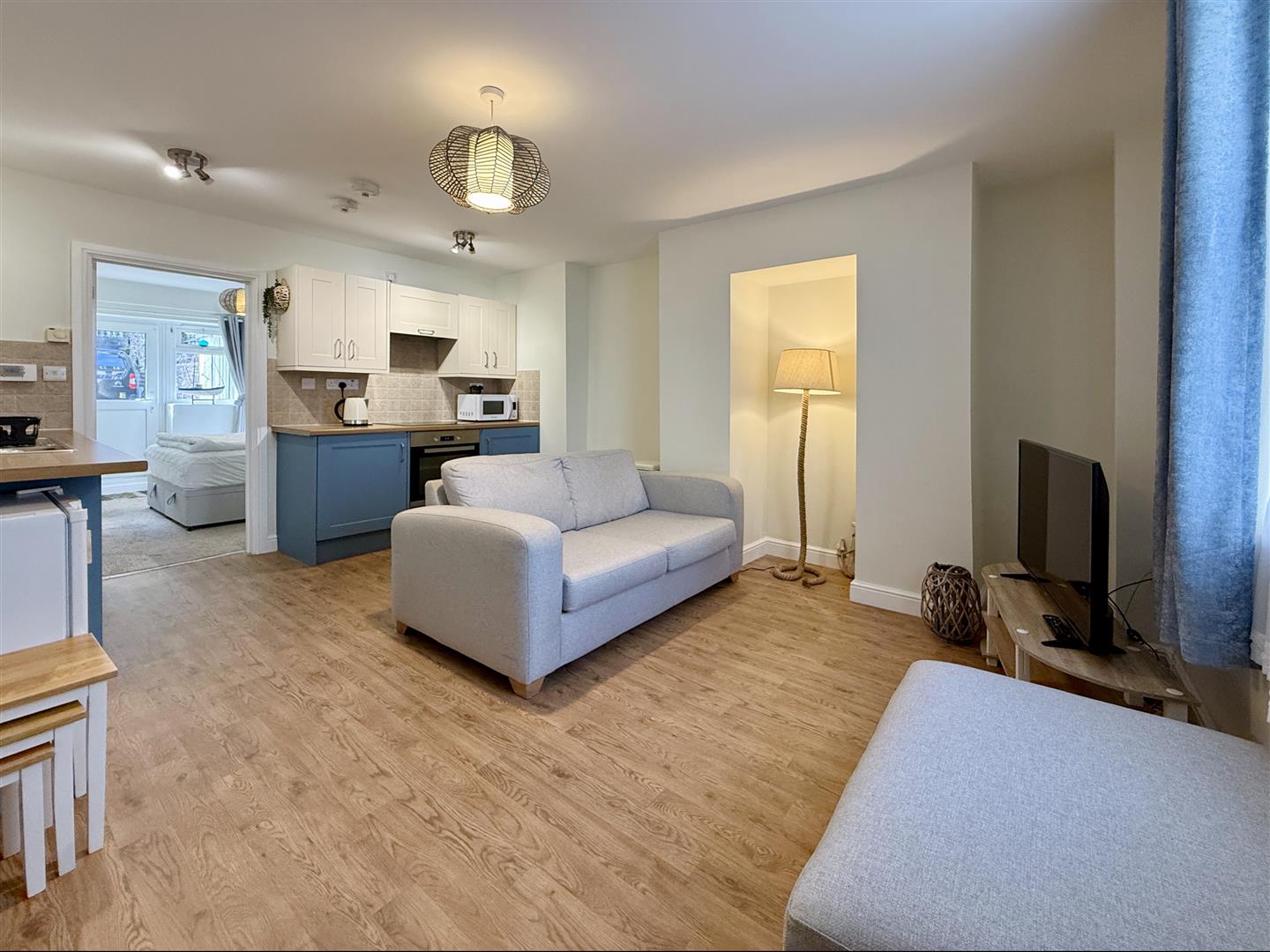 Internally, the accommodation is well arranged and comfortable, offering a thoughtfully designed layout that maximises the available space. The double bedroom is well proportioned and complemented by a modern fitted shower room with WC, finished in a clean and contemporary style.