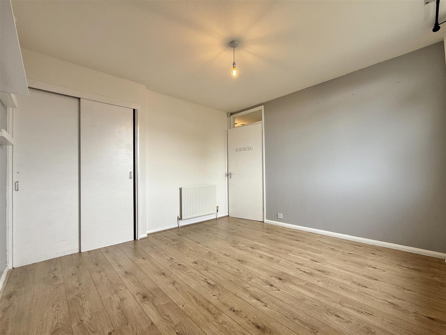 Upstairs, two double bedrooms offer generous proportions and built-in storage, while the third room is ideal as a nursery, home office or creative hobby space. The modern bathroom is finished in crisp white with smart tiling and vinyl flooring.