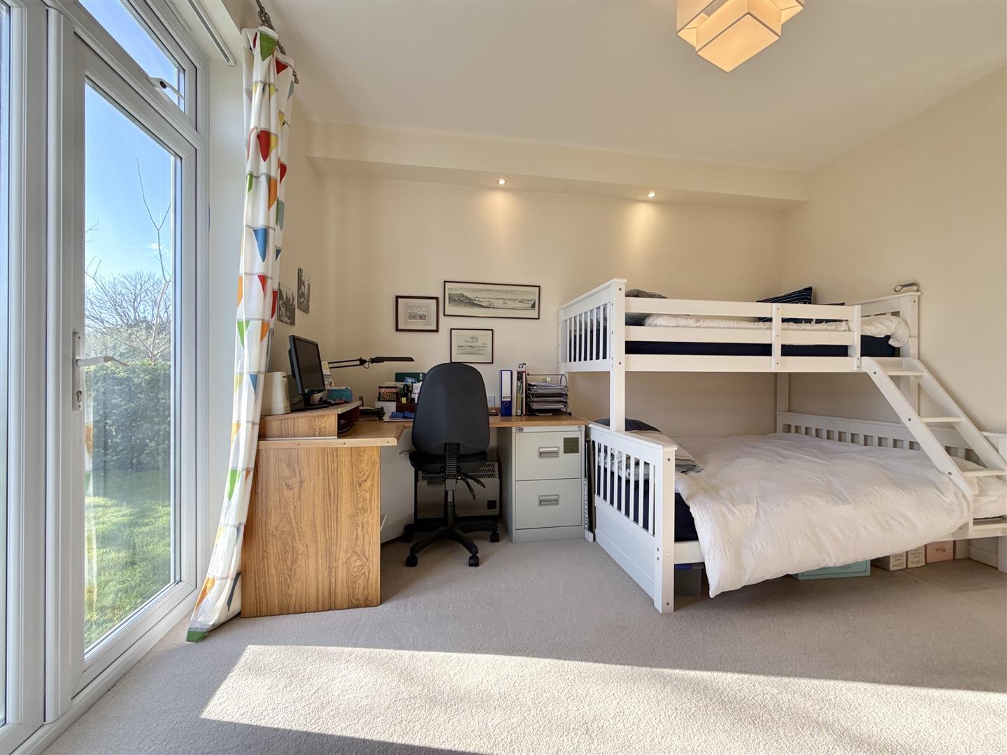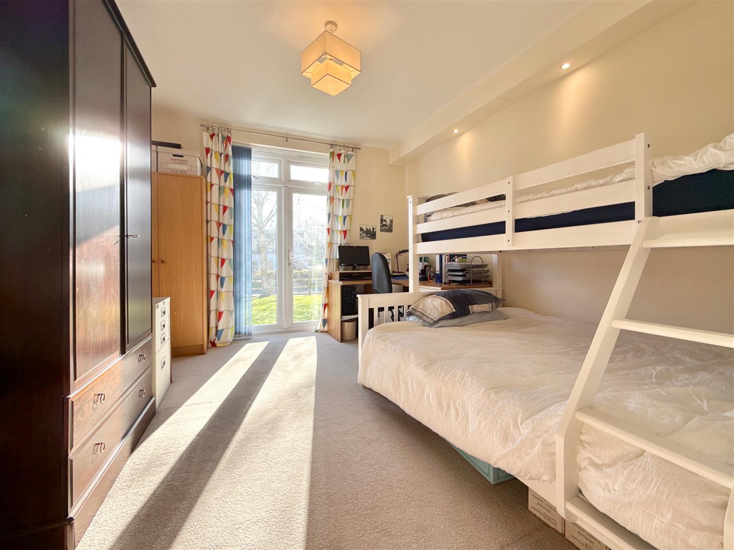 There are two generously sized double bedrooms, both with direct access to the garden and enjoying the same lovely outlook. The principal bedroom benefits from an en suite shower room, while a well-appointed family bathroom serves the second bedroom.