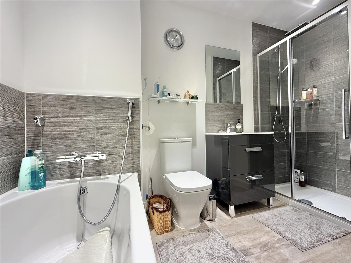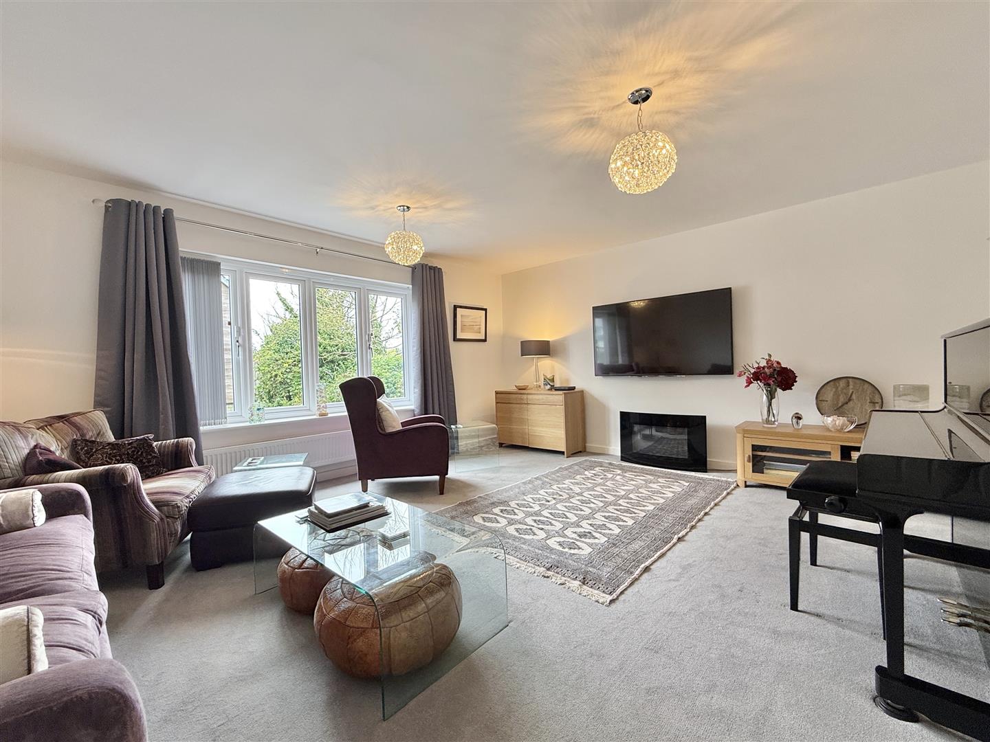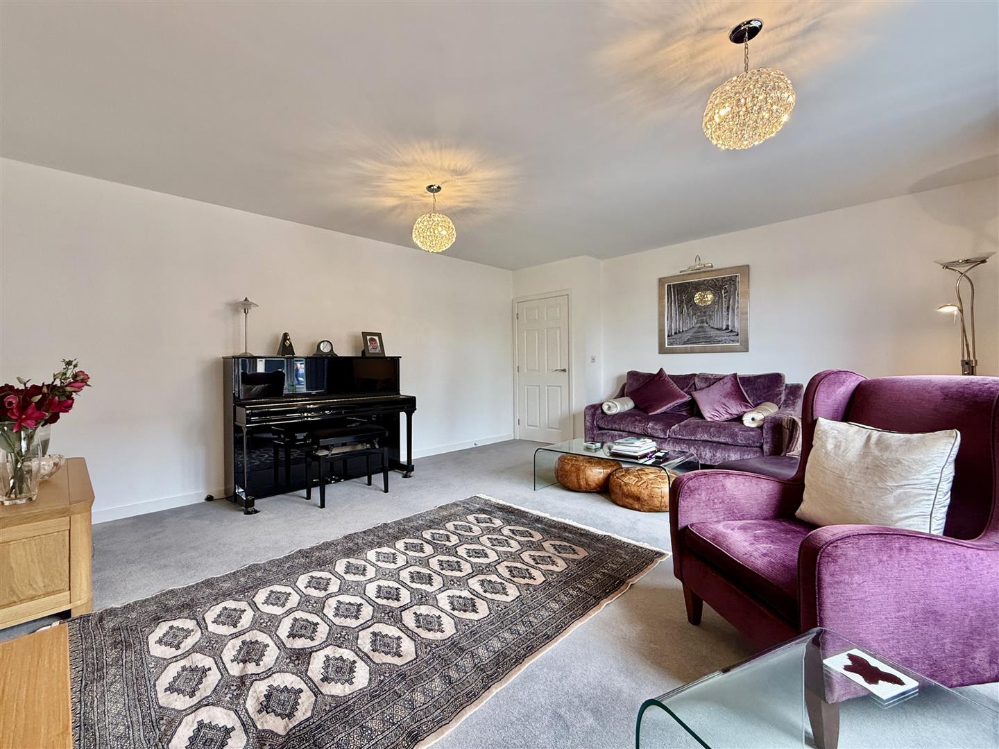 Inside, a spacious entrance hall sets the tone, leading to a generous lounge and an impressive kitchen/dining room where bi-folding doors seamlessly connect the home to the rear garden. The kitchen is fitted with high-quality integrated appliances and stylish contemporary cabinetry, creating a space that is both practical and perfect for entertaining. A ground floor study provides a versatile space for home working or exercise, while a cloakroom completes the downstairs accommodation. Throughout the ground floor, quality finishes such as Amtico flooring add a refined touch.