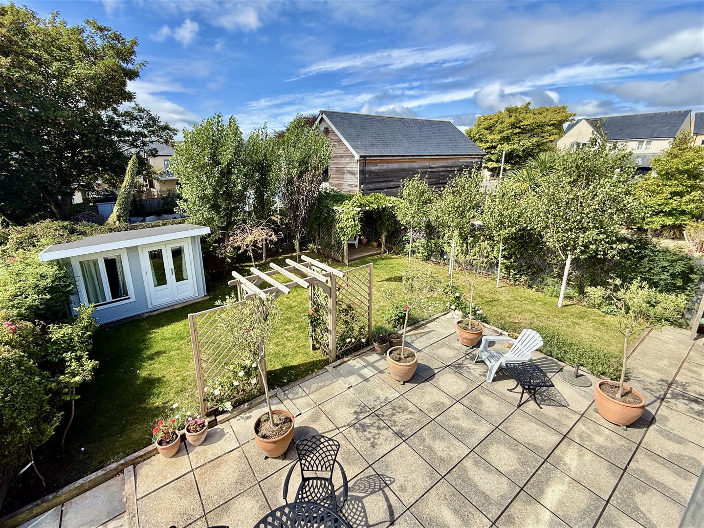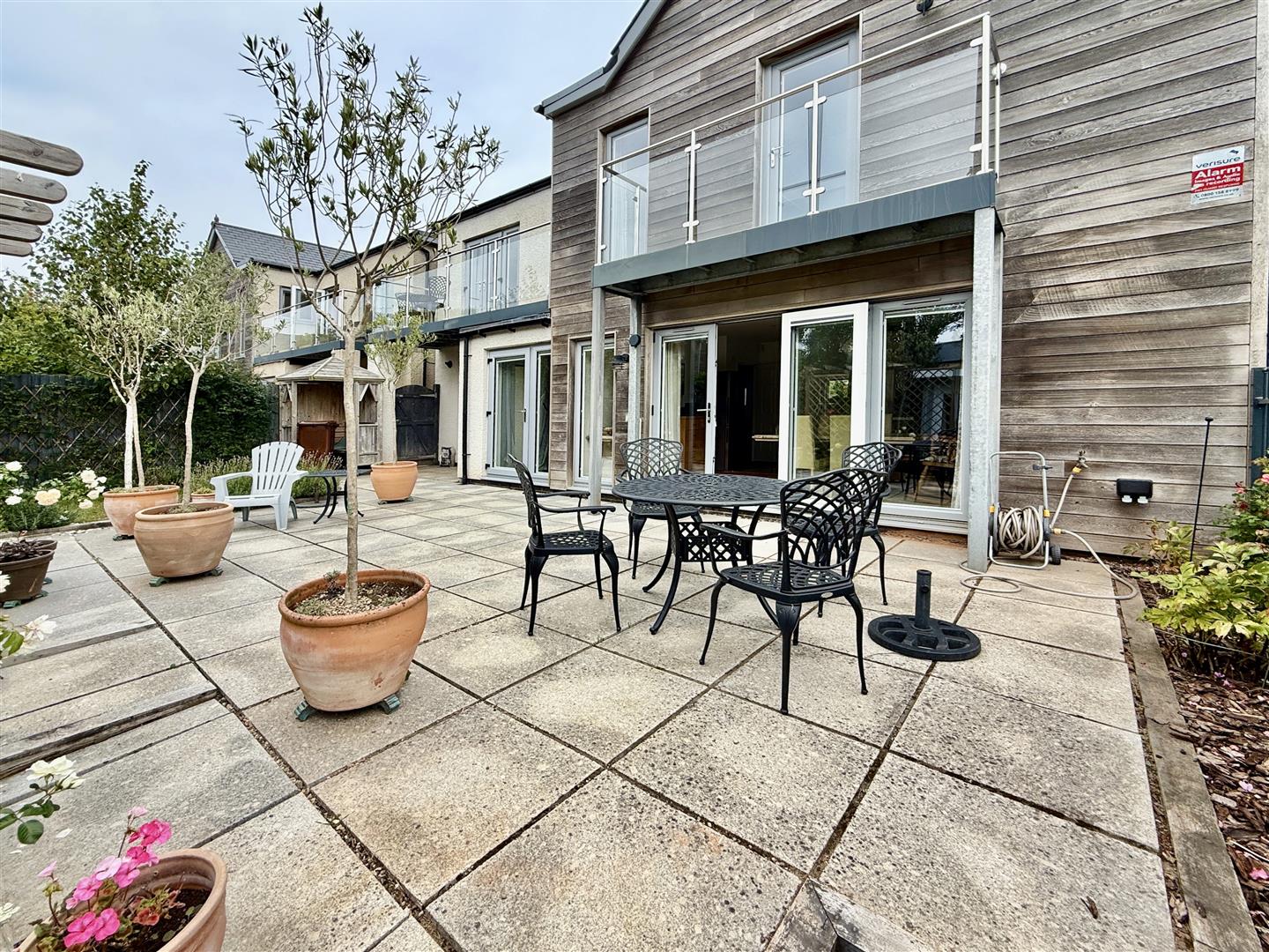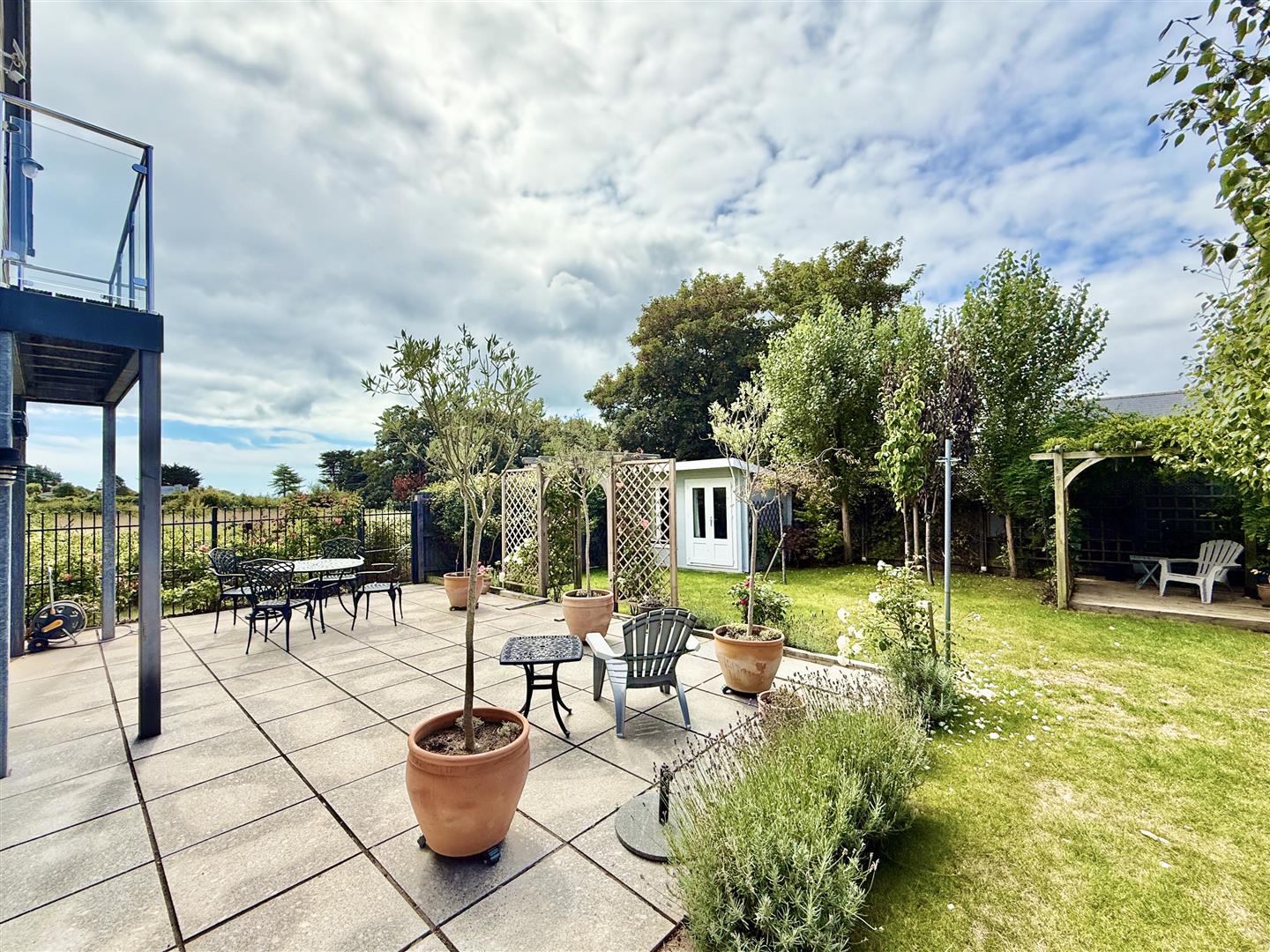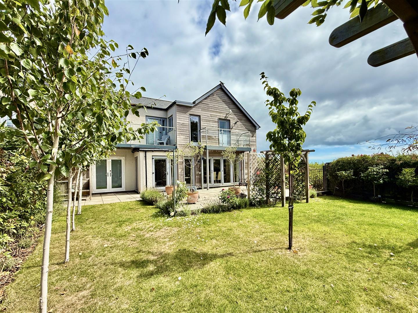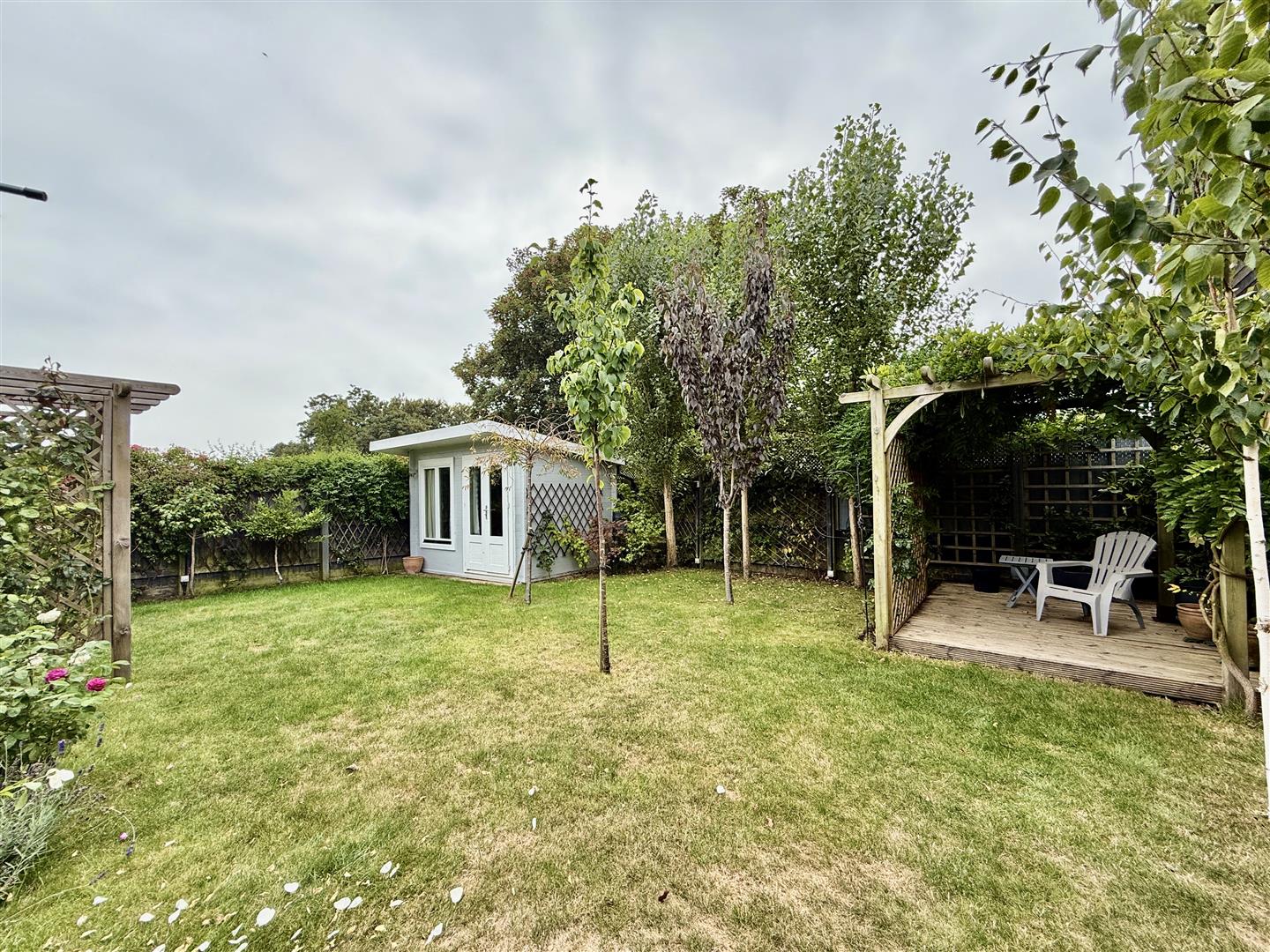 The rear garden is a particular highlight-beautifully landscaped and particularly large for a home of this type. Private gated access opens directly onto the Nature Reserve, making it ideal for those who love the outdoors. The garden features a thoughtfully planted array of shrubs and trees, including graceful Himalayan Silver Birch and a charming rose collection. A generous patio, perfect for summer entertaining, overlooks a neat lawn leading to a well-placed summer house and feature pergola, all designed for both beauty and function.