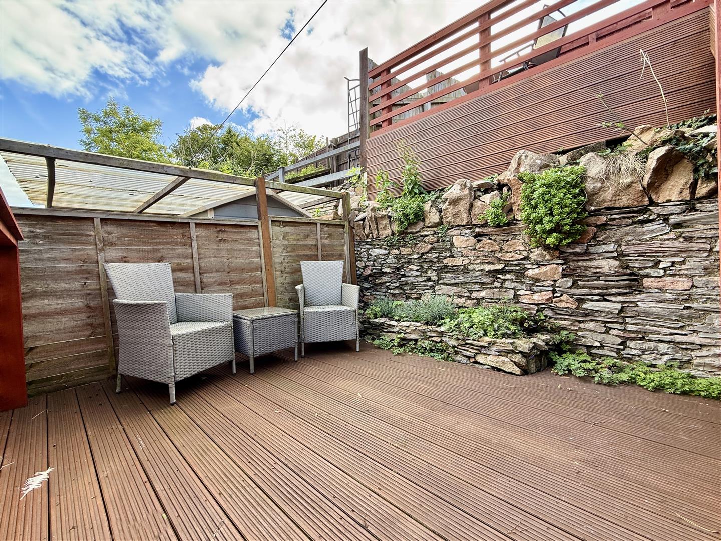 The garden itself is a real highlight: cleverly terraced over two levels, it provides a choice of spaces to enjoy. The lower level offers a lovely timber deck, perfect for outdoor dining or entertaining, while steps rise to a sunny patio area that captures open views and includes gated access onto Parkham behind. Current owner has made access from Wren Hill where there is ample parking, straight into the decked garden with access into the back of the house. There is also street parking available to the front of the lane.