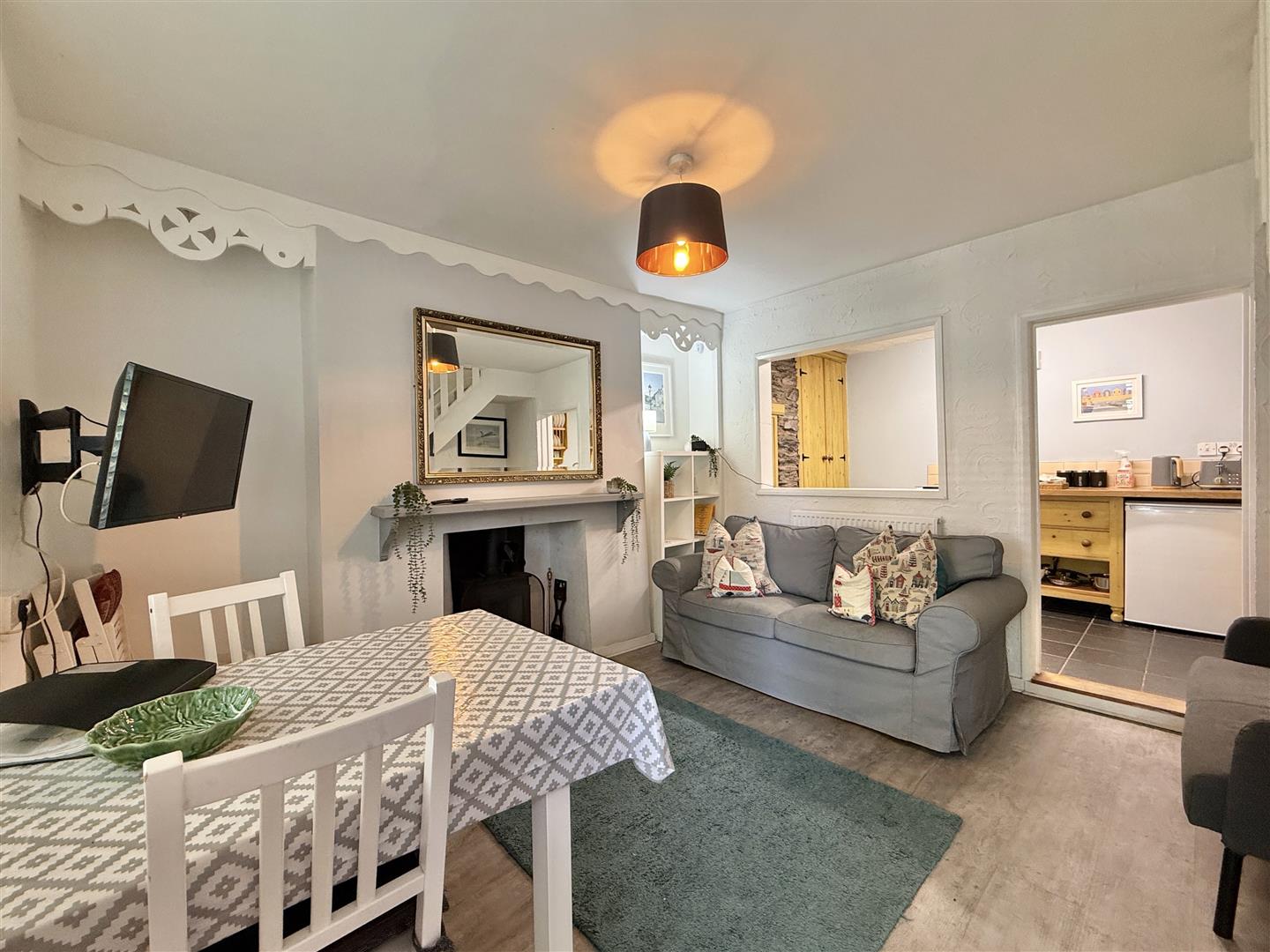 Palm Cott is a beautifully presented two-bedroom cottage, discreetly tucked away along a private lane. Offering a wonderful balance of seclusion and convenience, the property provides a peaceful escape while remaining only a short walk from the bustling town centre and picturesque harbour. Nestled beside Tinkers Wood in an elevated position, it benefits from excellent natural light and an open, leafy aspect rarely found in such a central location.